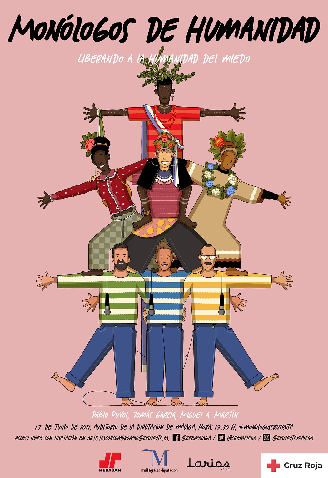 ‘Monólogos de humanidad’ contará con la participación (el día 24 de junio a las 19:30h en el Auditorio Edgar Neville de la Diputación de Málaga) de Tomás García, Pablo Puyol y Miguel Ángel Martín, quienes tendrán el desafío de hablar de respeto y convivencia con un tono de humor, tomando como punto de partida los 7 principios fundamentales de Cruz Roja: Humanidad, Imparcialidad, Neutralidad, Independencia, Voluntariado, Unidad y Universalidad. Se trata de la segunda edición después de la celebrada en mayo de 2019.