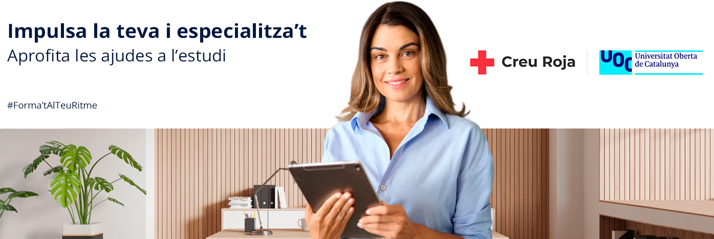 Gràcies a l'acord signat entre CREU ROJA i la UOC, el voluntariat, el personal laboral i els/les socis/es de la Creu Roja poden beneficiar-se de grans descomptes per continuar formant-se professionalment.