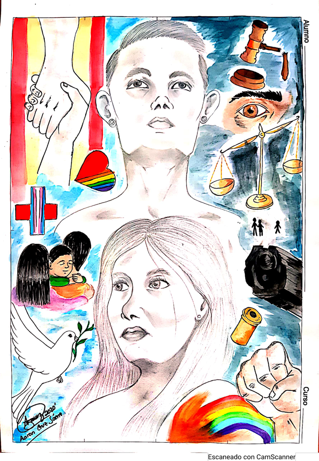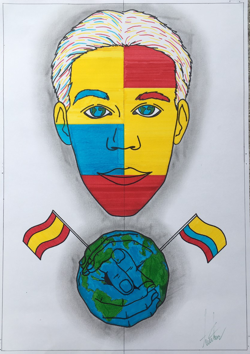 Las mujeres representan la justicia ciega y sorda, la injusticia que tiene cada país. El astronauta con las banderas representa cada emigrante y sus países, con la mirada al frente, dispuesto a seguir adelante. Las olas del mar con la palabra familia refleja la importancia de esta. Siempre va estar con nosotros sin importar dónde nos encontremos. La brújula, con el ancla y el mapa nos acompañan en el camino hacia nuevas tierras, donde se presentan oportunidades. El cielo se distinguen dos zonas. La parte más oscura representa las emociones en el momento de partir y dejar todo atrás. La parte más luminosa representa las oportunidades, nuevos comienzos, nuevas culturas y la esperanza de algún día volver a ver a tus seres queridos.
