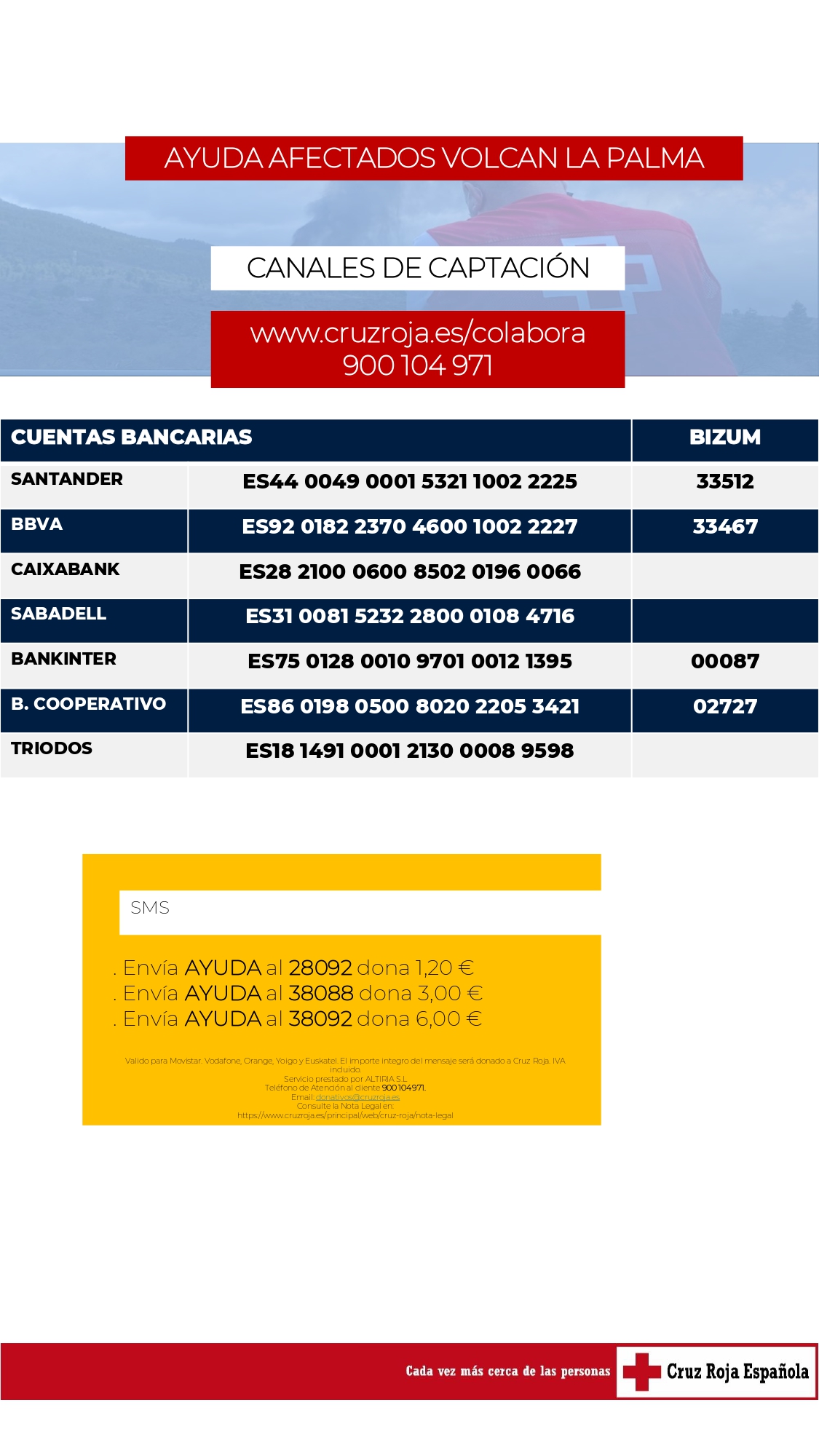 Desde el día 11 de septiembre en que se intensificaron y concentraron los primeros movimientos sísmicos en la Isla, Cruz Roja en Canarias ha participado de las actuaciones contempladas en el Plan de Emergencias Volcánicas de Canarias (PEVOLCA), de acuerdo a los Convenios suscritos con el Cabildo de la Isla de La Palma y con el Gobierno de Canarias, como Entidad colaboradora del Sistema Nacional de Protección Civil.
