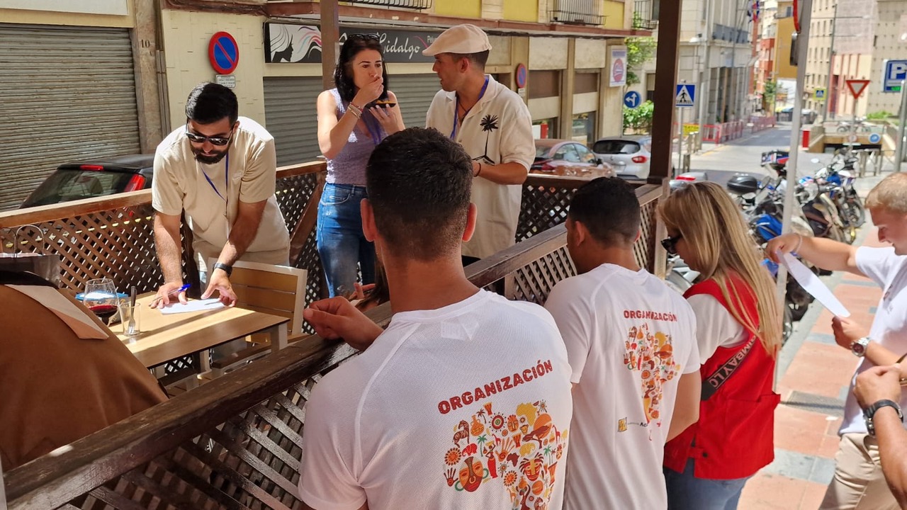 Estos platos típicos se podían encontrar en quince establecimientos de la ciudad que quisieron participar del evento. Cada equipo contaba con un recorrido diferente para evitar aglomeraciones. Pero eso no fue todo, de un bar a otro los y las participantes de la actividad, con ayuda de los residentes, tuvieron que enfrentarse a diferentes pruebas y retos relacionados con el continente africano con el objetivo de fomentar también la integración de los usuarios del CETI con los y las ceutíes. “Durante la ruta hemos tenido actividades de varios tipos, desde un trivial con preguntas de toda África hasta proverbios, trabalenguas en idiomas africanos como el suhagili o bambara y participantes debían acertarlo”, añade Estefanía Muñoz.