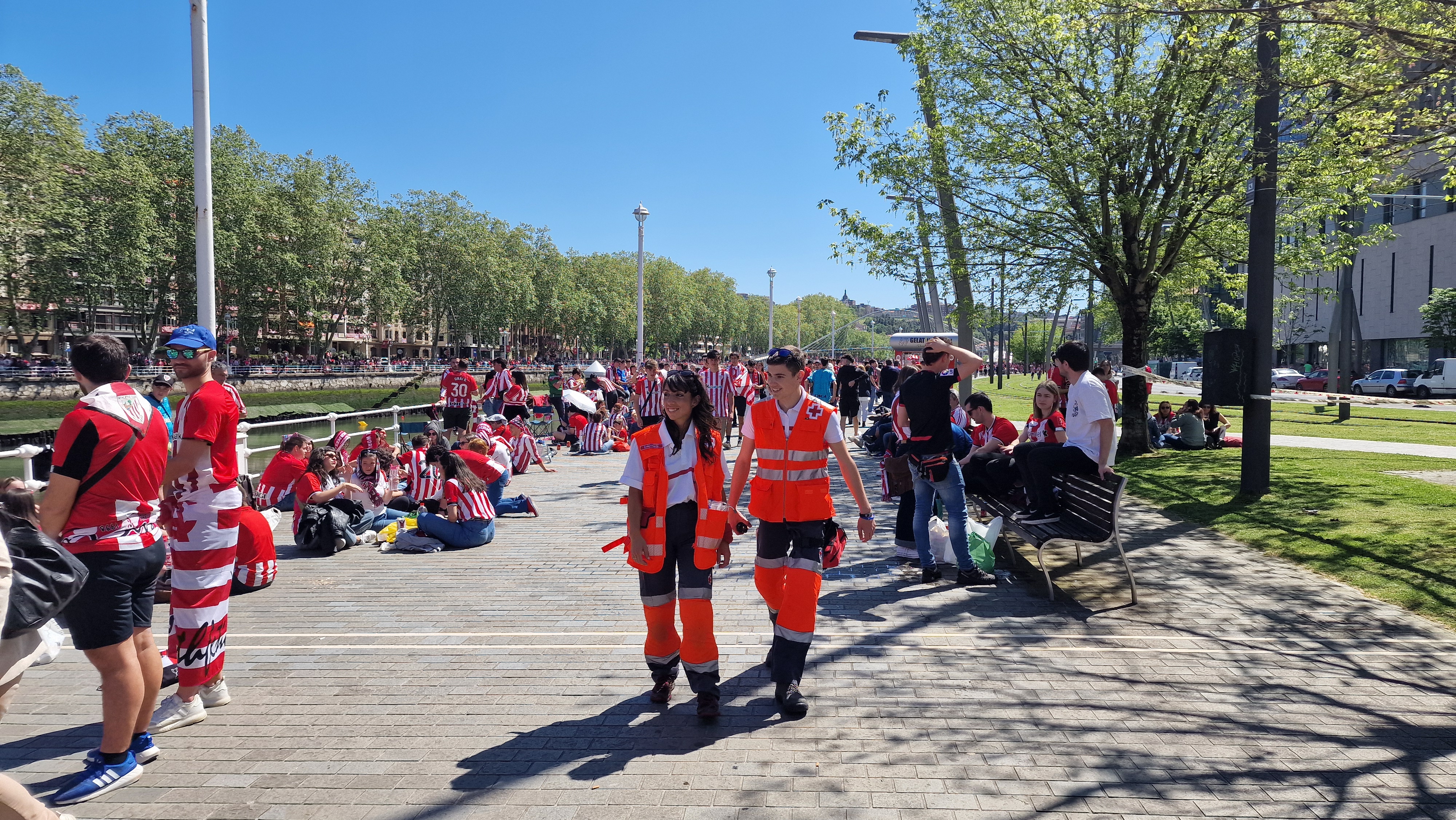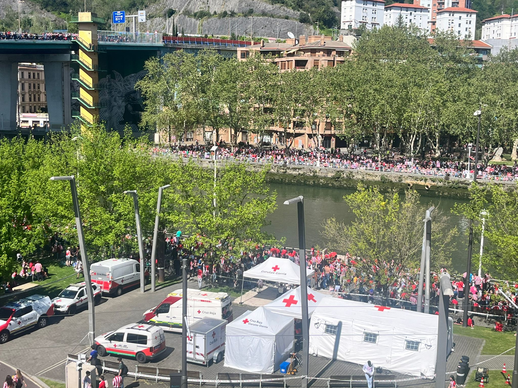 Se trata de un acontecimiento cargado de significado no solo por el club y la afición, sino también por la dimensión y el recuerdo histórico que implica e implicará años después. Para evitar riesgos y accidentes a causa de la multitud, Cruz Roja en Bizkaia, en coordinación con los servicios de emergencia del Gobierno Vasco, participó realizando un servicio preventivo con un amplio desglose de recursos materiales y humanos. “Nunca hemos intervenido en algo igual, se espera mucha afición y desde la Organización debemos estar preparados para todo y más”, apunta días antes Koldo Larrazabal, director provincial de Socorros y Emergencias de Cruz Roja en Bizkaia.