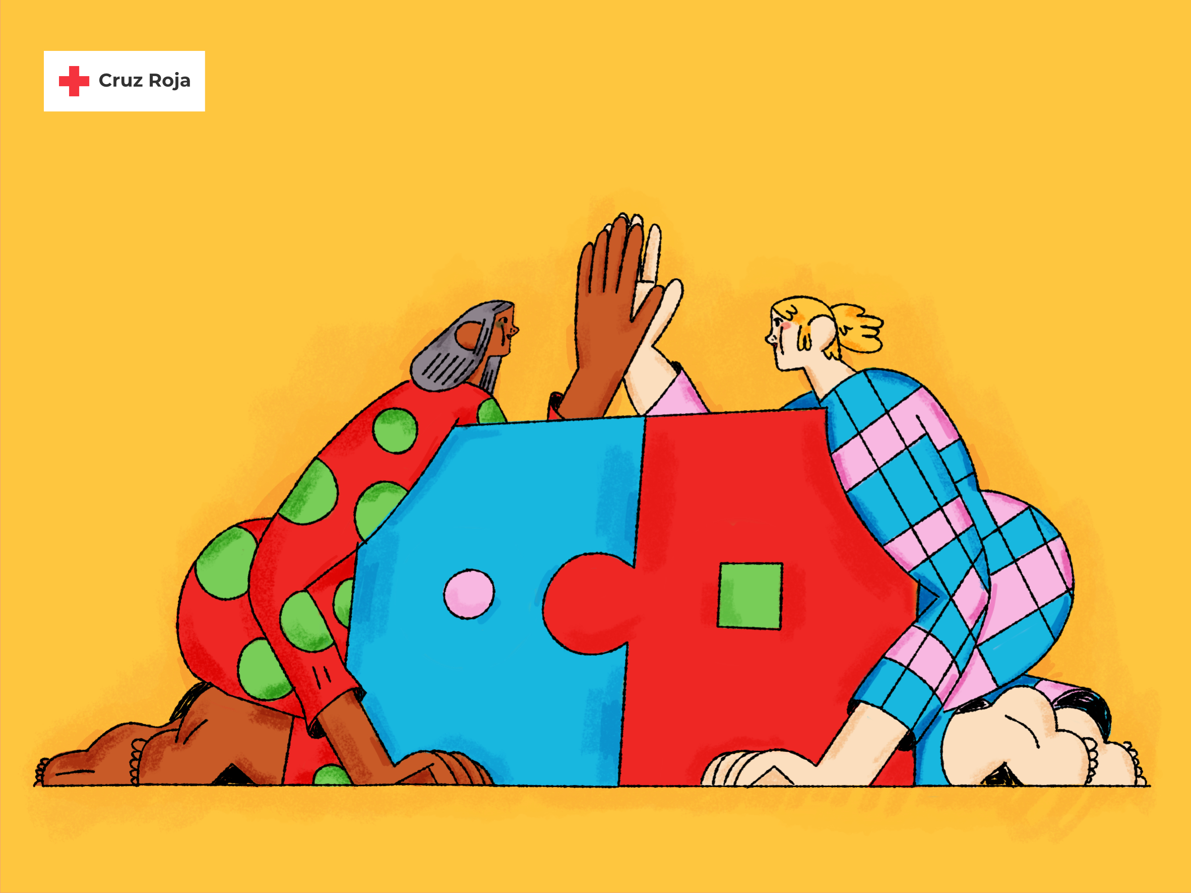 Sergio Membrillas reside y trabaja en Valencia como ilustrador freelance para una gran variedad de clientes internacionales. Compagina su trabajo freelance con la docencia de ilustración en la Universidad de Bellas Artes de la Universidad Politécnica de Valencia. Esta ilustración representa el trabajo en equipo y la compatibilidad, comúnmente representados a través de las piezas de un puzzle. La unidad, uno de los principios universales de Cruz ROja, y el trabajo en equipo son un valor fundamental dentro de la organización.