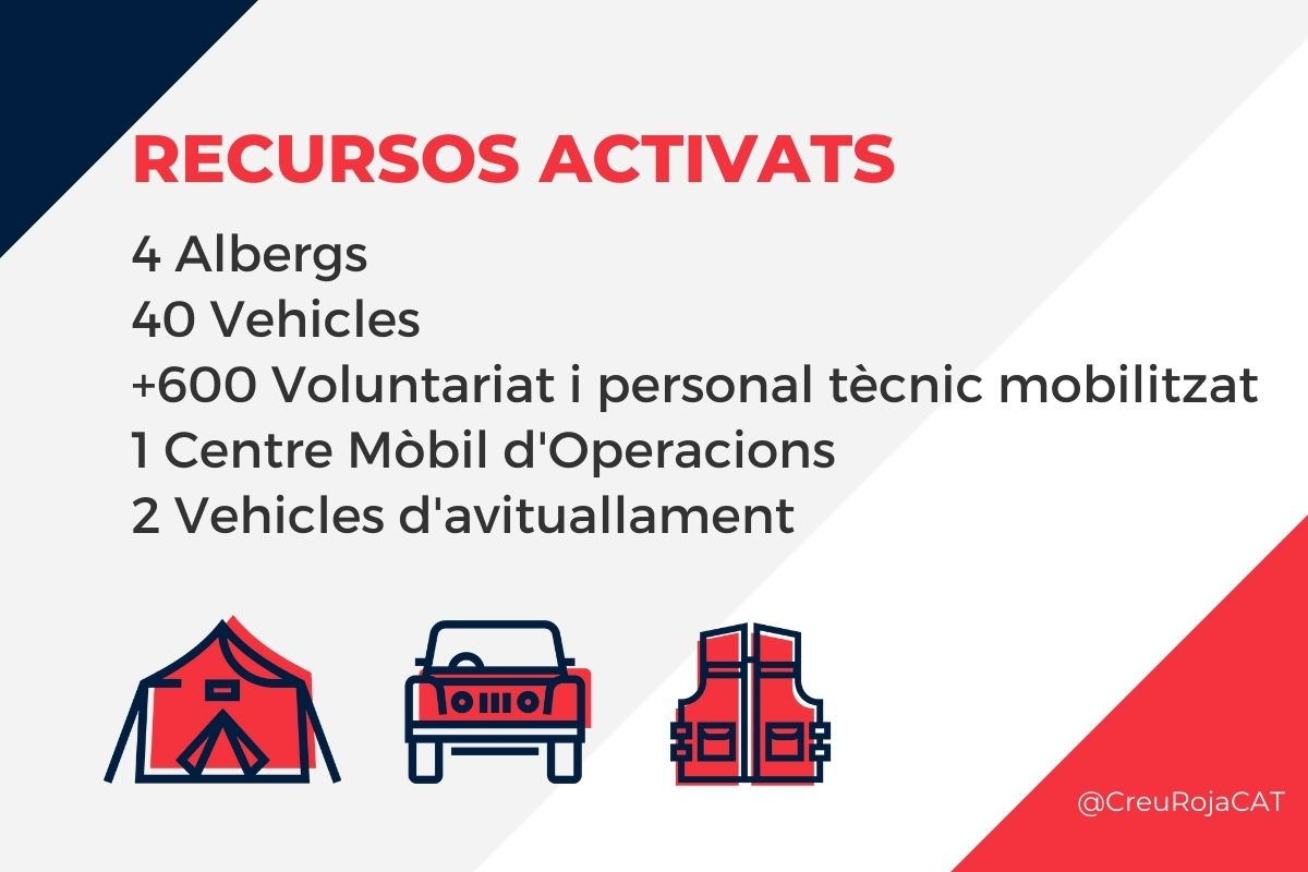 De fet, en aquesta temporada d'incendis fins ara, la Creu Roja ha mobilitzat només a Catalunya més de 600 persones entre voluntaris i personal tècnic, ha gestionat 4 refugis d'emergència temporals per acollir veïns, veïns, joves i nens desallotjats de les poblacions, masies i cases de colònies de la zona afectades pels incendis. Per tot això, han intervingut més de 40 vehicles, entre els quals destaquen 2 vehicles d'avituallament i el Centre Mòbil d'Operacions