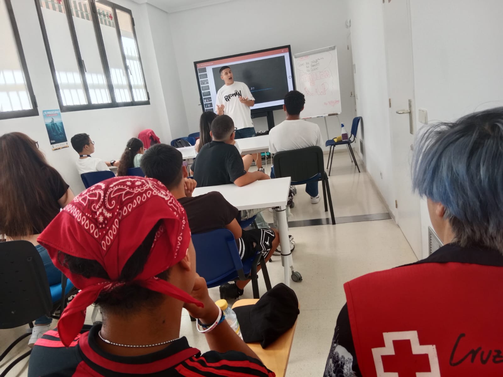 El rapero Pedro 003 de 21 años lleva desde que tiene memoria escuchando rap en su casa y lo que comenzó siendo una afición con amigos, pasó a convertirse en su modo de vida y en su manera de ver el mundo. “Me propusieron impartir este taller desde Cruz Roja y yo no dudé en decir que sí, para mí fue todo un reto porque no es lo mismo el conocimiento que uno tiene que transmitirlo y enseñarlo a los demás”, cuenta el joven rapero.
