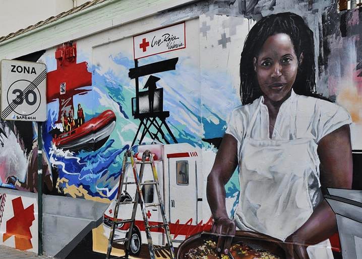 En Valencia, son varios los murales que cuentan historias de Cruz Roja. Uno de ellos adorna el muro que rodea la actual sede de Cruz Roja en Guillem de Castro, llenando de color y arte el edificio desde 2017. El artista urbano Jandro DKR fue el encargado de realizarlo para transmitir los valores y principios de la Organización. Cada imagen representa alguna de las áreas o actividades que lleva a cabo Cruz Roja. Es uno de los murales más llamativos de la ciudad.