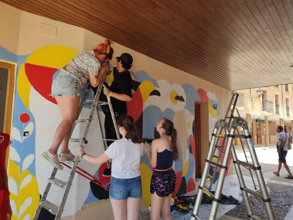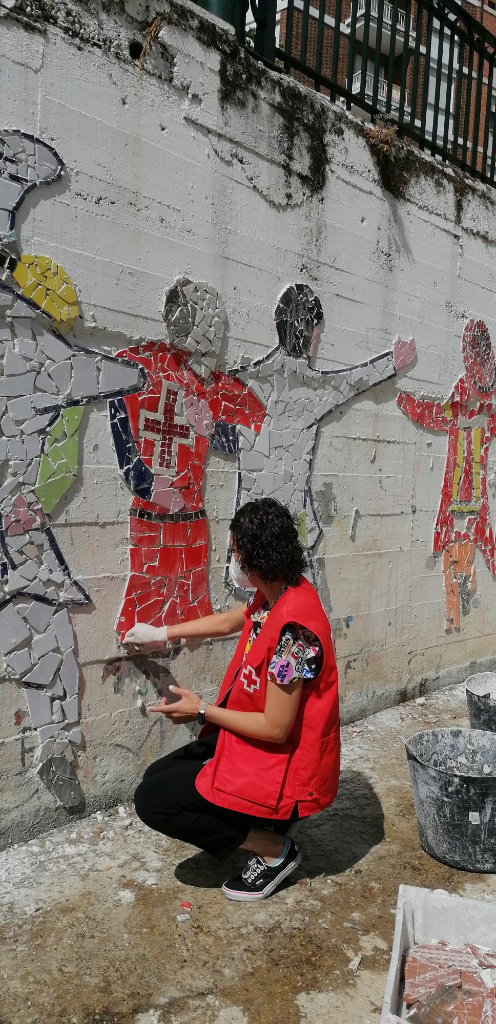 Las personas voluntarias de Cruz Roja en Burgo de Osma coordinados por profesionales que se propusieron desde la dirección de Cruz Roja Juventud Castilla y León fueron las responsables de realizar este mural dentro del programa de Activación Juvenil en zonas rurales de Castilla y León, que se financia a través del IRPF de la Junta de Castilla y León.