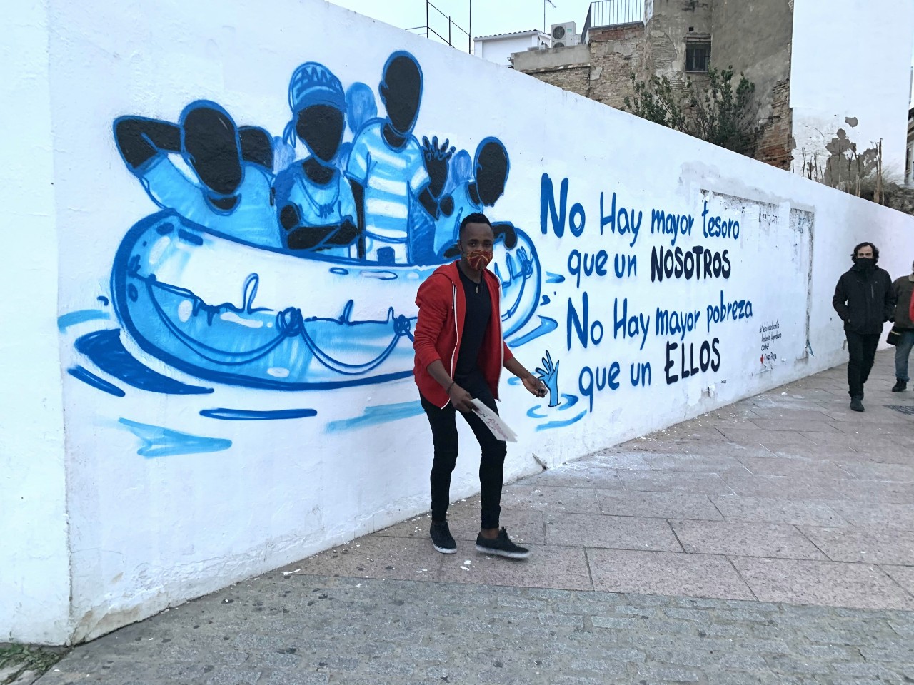 El IES Baelo Claudia de Tarifa acoge este grafiti de ImparableDesign sobre las migraciones, en una ciudad testigo de esta emergencia desde hace 30 años. La obra fue realizada con motivo del Día mundial de las Personas Migrantes para hacer reflexionar sobre los desafíos a los que se enfrentan estas personas. El grafiti se hizo, además, en homenaje a Iván Lima, un referente en Cruz Roja en la atención de inmigrantes, que murió en 2020 a causa del COVID. El mural, de hecho, está en el instituto donde una de sus hijas estudiaba.