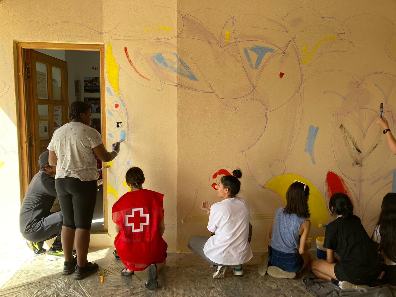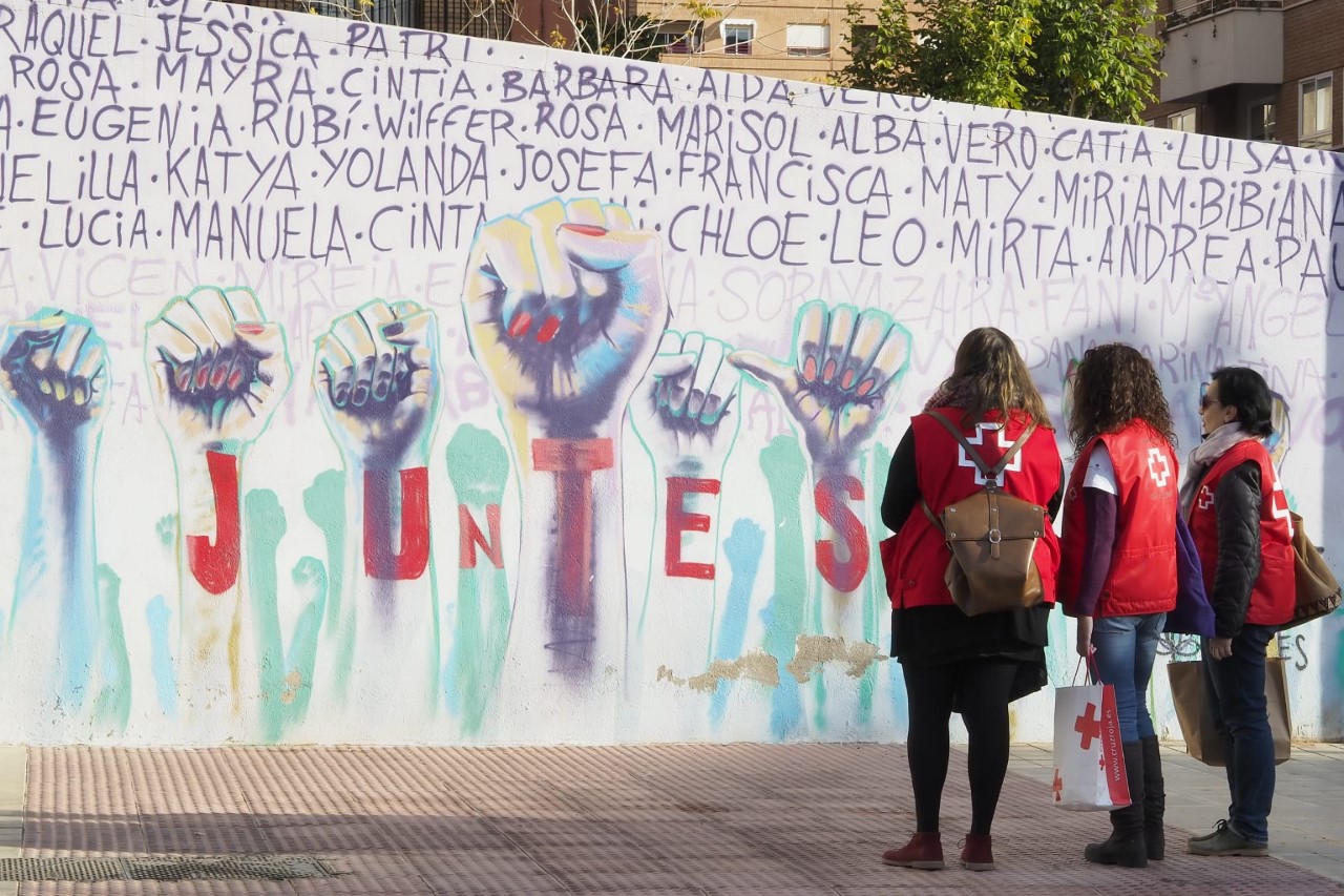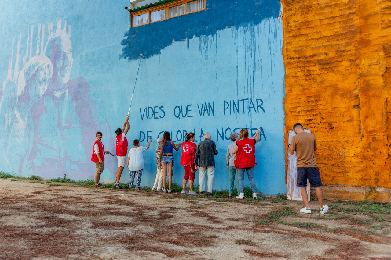 En la localidad castellonense de Burriana, tienen dos murales que han sido pintados por personas usuarias de diferentes programas. Uno con motivo del 8M elaborado por jóvenes del Programa Operativo de Empleo Juvenil (POEJ) que tiene además un significado muy especial, ya que una de las mujeres representadas es una compañera de Cruz Roja que falleció solo unas semanas antes de pintar el mural. En la misma ciudad, otro mural representa la diversidad y fue pintado por personas mayores, adolescentes y niños y niñas participantes de algunas de las iniciativas que la Organización lleva a cabo allí.