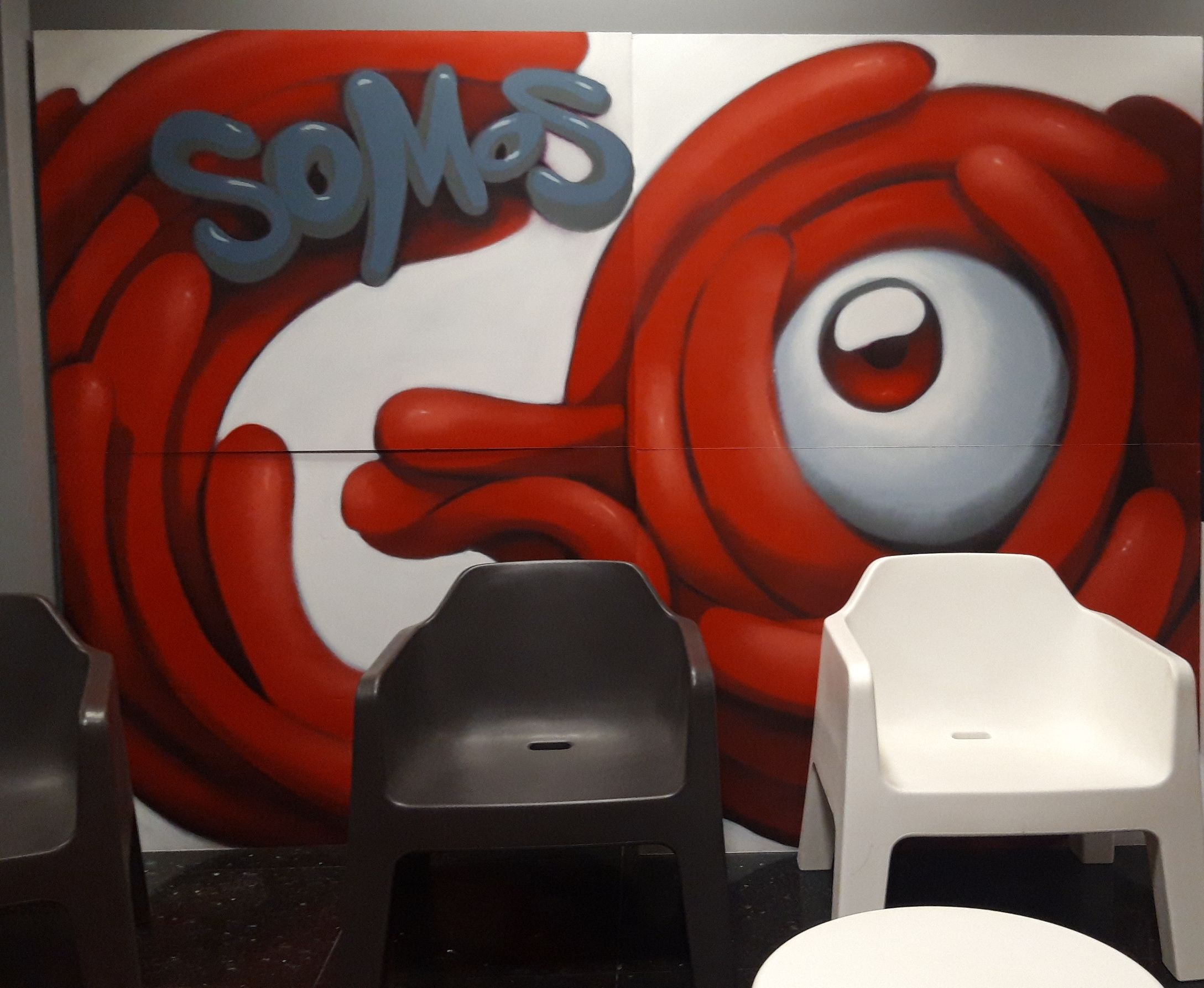 No todos los grafitis están al aire libre. En Navarra, esta obra realizada por "PIN" decora una de las paredes de las dependencias de Cruz Roja y está enmarcada en la clausura del Programa Operativo de Empleo Juvenil (POEJ) y representa el logotipo del mismo "Somos Go".