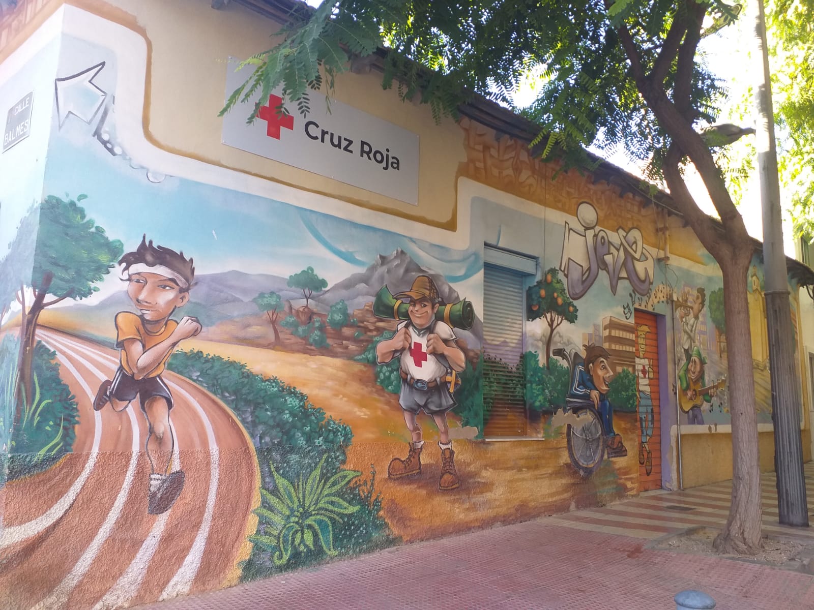 La fachada de la sede de Cruz Roja en San Vicente del Raspeig es un gran mural donde se recogen algunos de los valores asociados con la Organización, desde el amor por la naturaleza a la importancia de inclusión de toda la sociedad. El área que engloba a las personas jóvenes de la Organización tiene en este mural un gran protagonismo.