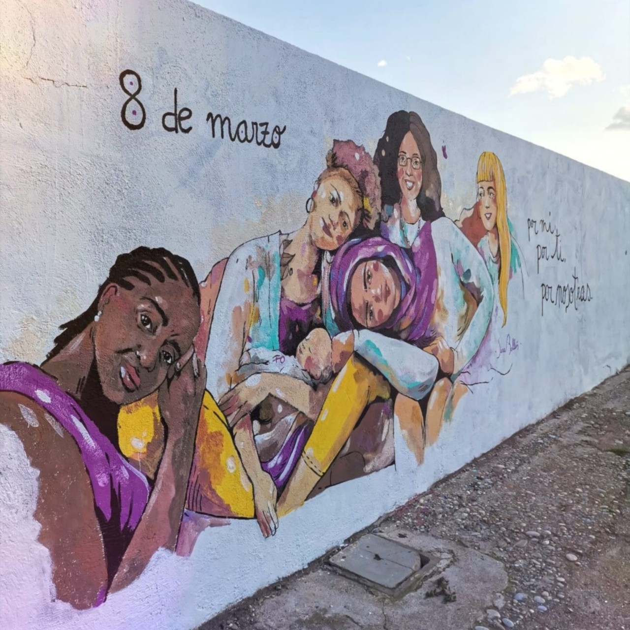 Con motivo del 8 de marzo, este mural fue pintado por las voluntarias resilientes, usuarias y equipo laboral del proyecto Juntes, una iniciativa que conecta mujeres que sufrieron violencia de género en el pasado con otras que están siendo víctimas en el presente, con la finalidad de combatir la soledad y el desamparo que sienten.