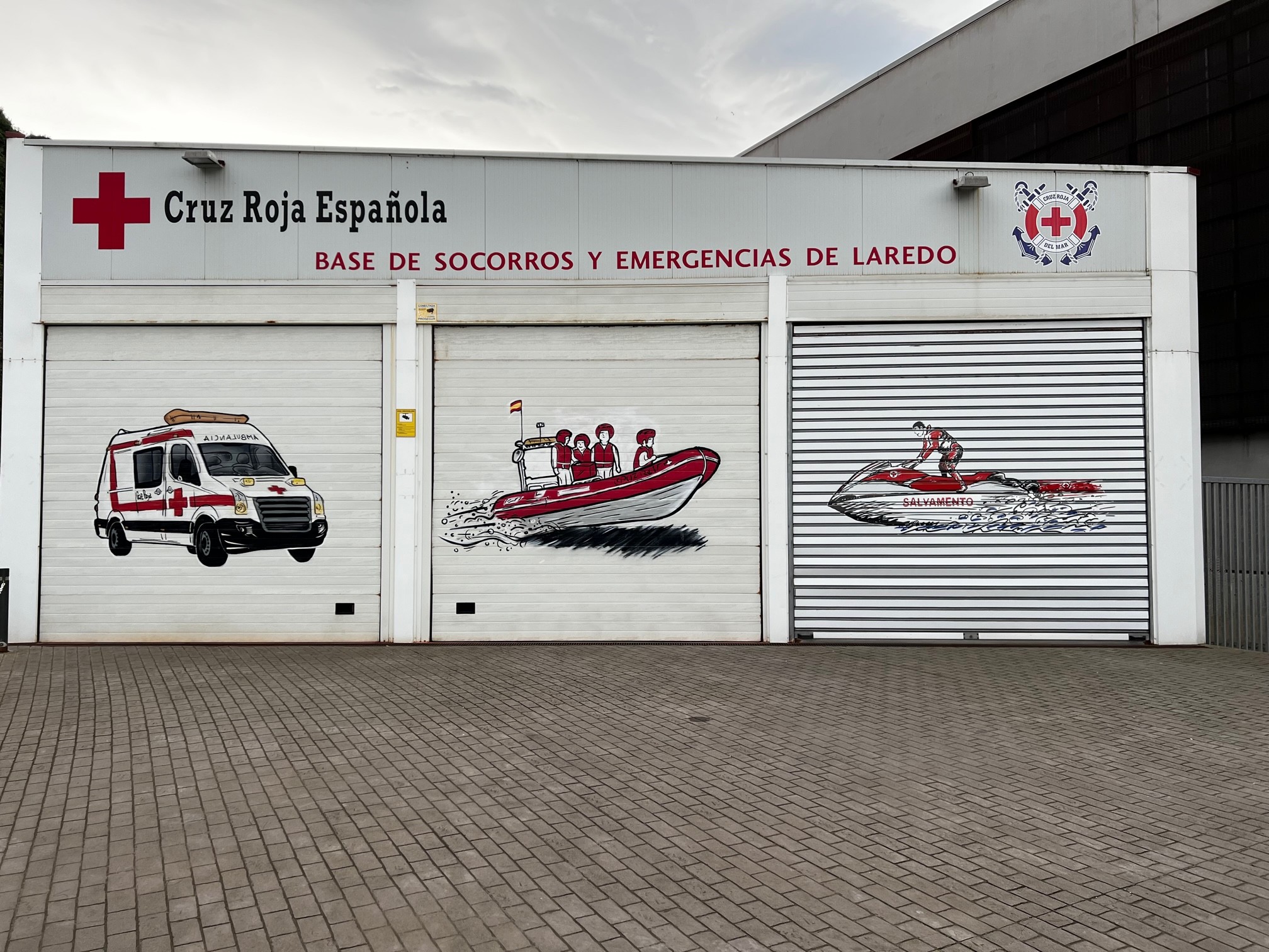 Estos grafitis se hicieron en la sede de Cruz Roja en Laredo por un artista local, Steve Camino, conocido en la zona y quien suele decorar fachadas y otros lugares del pueblo.