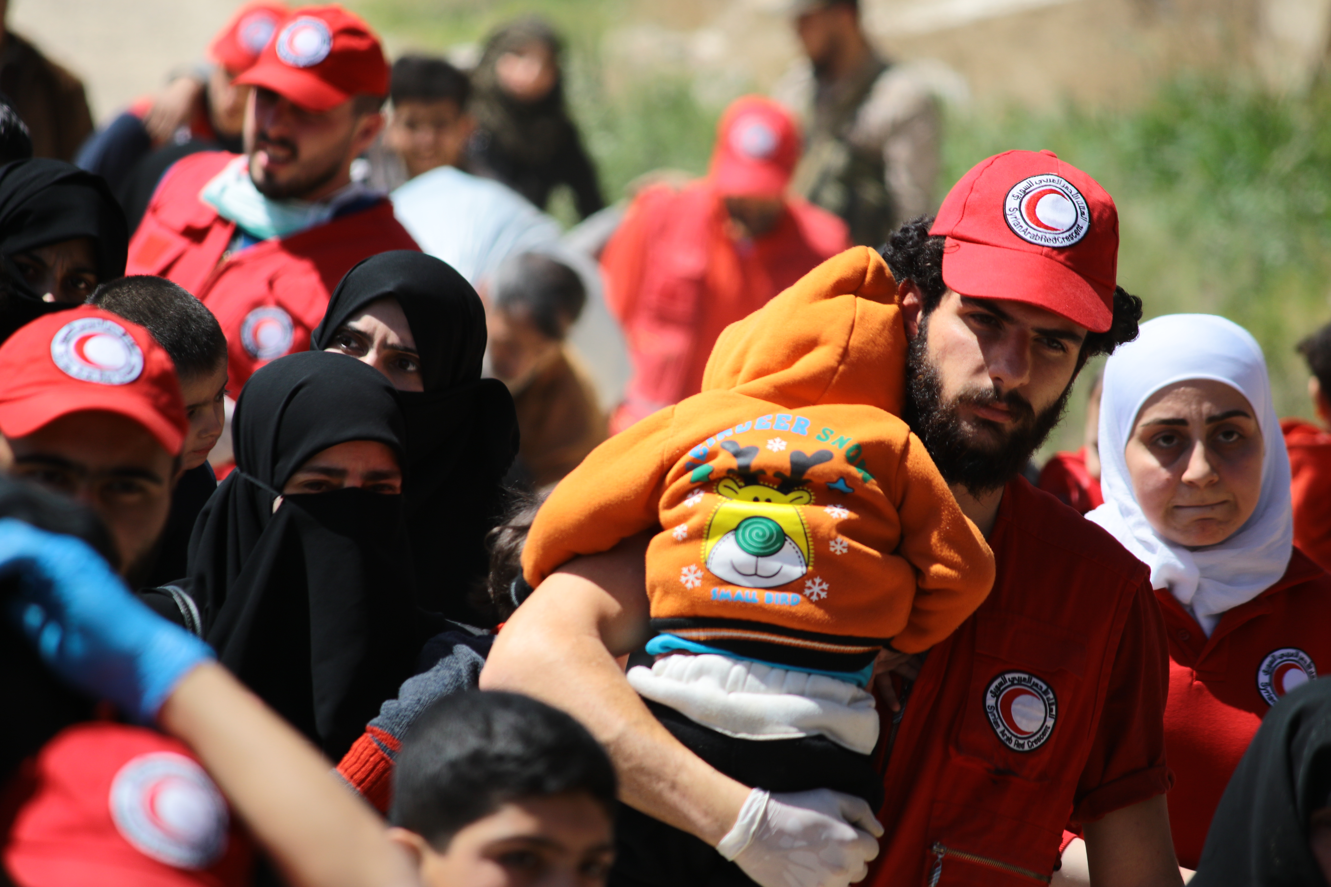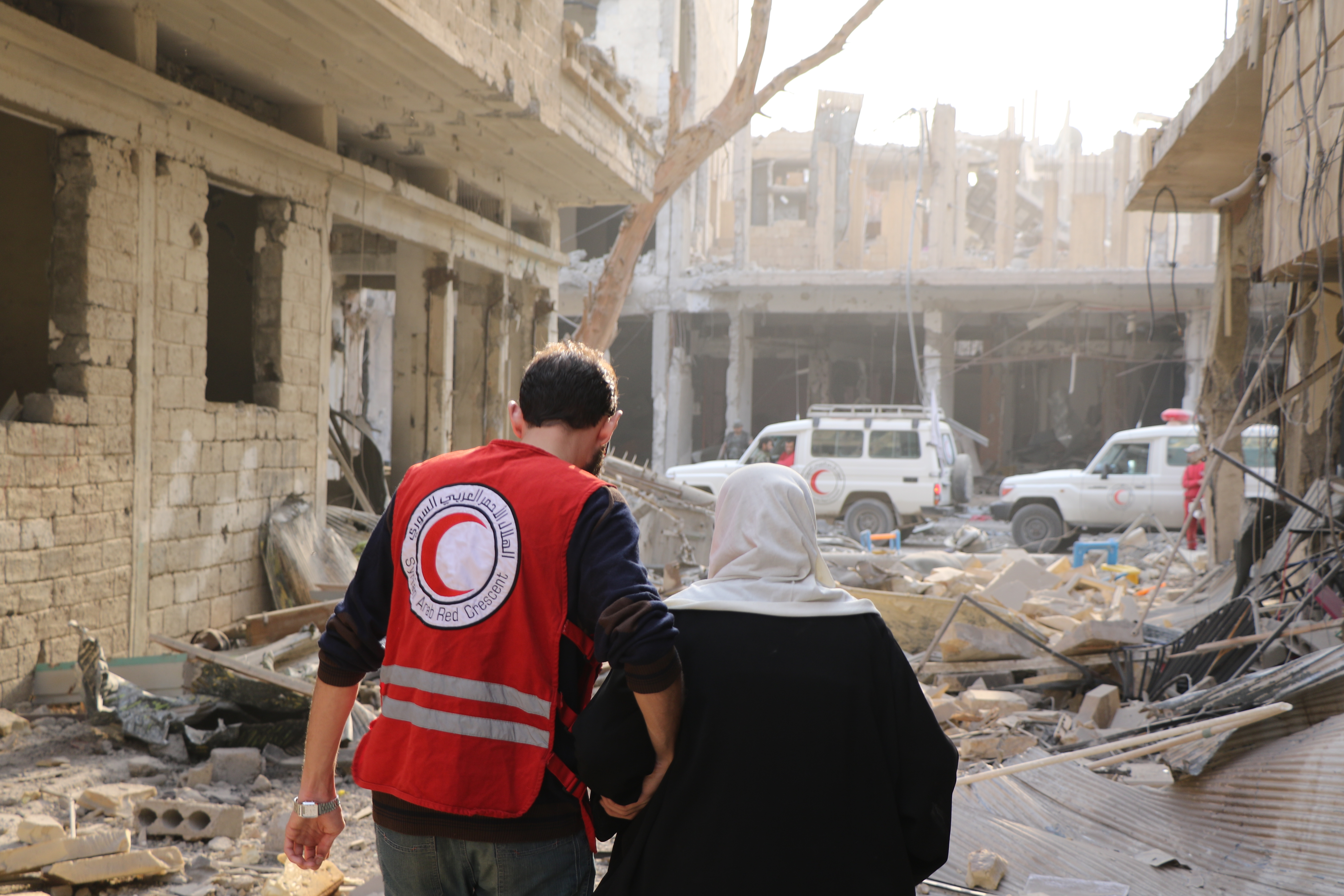 Desde el comienzo del conflicto, la Media Luna Roja en Siria ha asistido a las víctimas a través de sus más de 11.000 personas voluntarias. La Media Luna Roja trabaja en estrecha colaboración con el Comité Internacional de Cruz Roja (CICR), desde donde se atiende a las personas que todavía permanecen en Siria, pero también a las que se refugian en países como Jordania, Líbano o Irak. Su labor pasa por la distribución de alimentos, medicamentos y otros artículos esenciales.