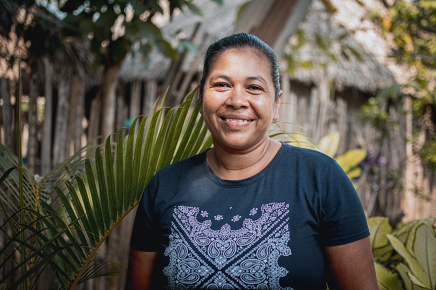 "Mi nombre es Narly (…). Yo pertenezco a la comunidad indígena La Esperanza, soy una mujer emprendedora. Yo cuando tuve mis 2 niños, por escasos recursos yo tuve mis hijos con una partera, fue en la casa y con el segundo niño tuve una hemorragia y casi fallezco, porque no teníamos un médico que nos atendiera aquí en el corregimiento."