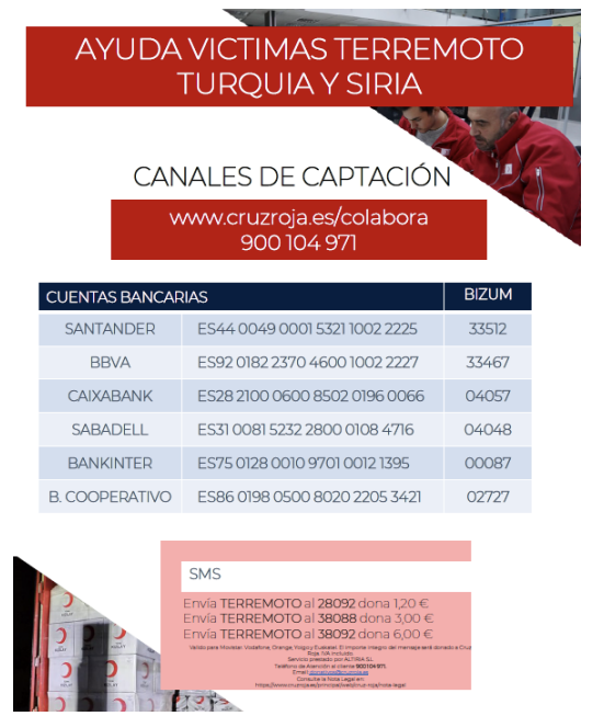 Desde Cruz Roja Española se ha abierto una campaña de captación de fondos, cuyos canales se muestran a continuación.