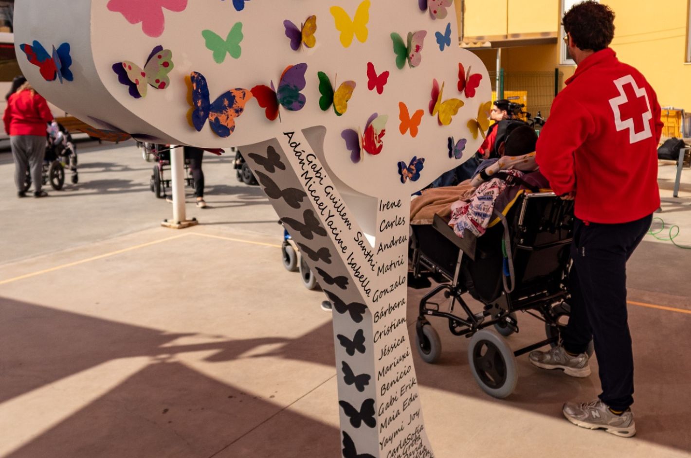 Para la Organización, el árbol se ha convertido en un espacio cargado de significado. El alumnado del centro, junto a su equipo educativo, se ha encargado de decorarlo con los nombres de todos los estudiantes. Junto a ellos aparecen mariposas que, poco a poco, van cobrando color y elevándose entre las ramas: una metáfora del camino que recorren al superar dificultades y avanzar hacia una inclusión plena en la sociedad. El resultado de este trabajo colectivo ya puede visitarse en la Plaza del Ayuntamiento de Valencia hasta el 19 de marzo.