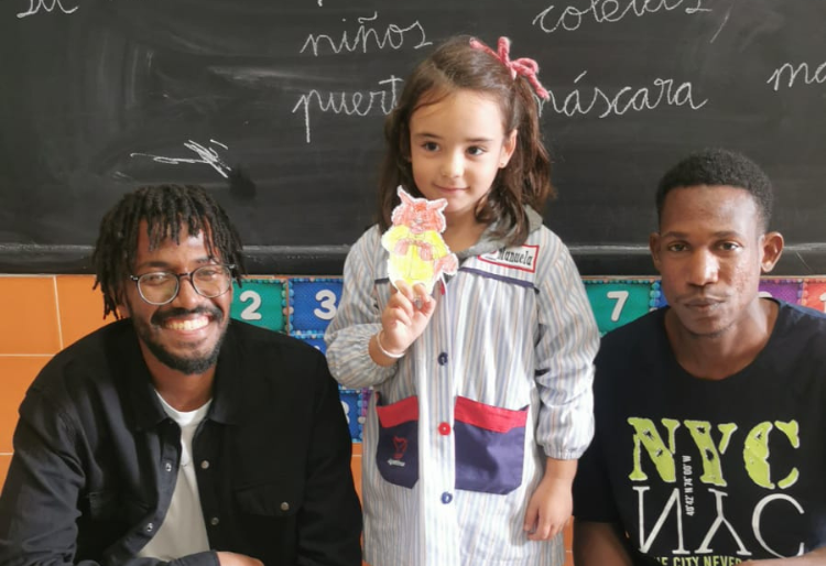 La actividad va dirigida a los y las niñas de infantil y primer ciclo de primaria. Los residentes del CETI con un discurso dinámico y adaptado al curso al que se dirigen, se presentan y explican, a través de un mapa, de dónde vienen y lo que han venido a contarles. La dinámica tiene dos partes, una en la que los chicos del CETI se encargan de contar el cuentacuentos y otra parte en la que realizan manualidades relacionadas con la historia que han escuchado. Cuando termina el cuento se reflexiona con los niños y niñas acerca de las similitudes que tiene el cuento africano con Caperucita Roja para que entiendan que aunque nos separen ciertas cosas, nos unen muchas otras. “Los chicos del CETI disfrutan mucho de la actividad, se enriquecen de la inocencia y la atención plena de los niños y las niñas y además, sienten que están aportando valor a la sociedad”, apunta Estefanía Muñoz.