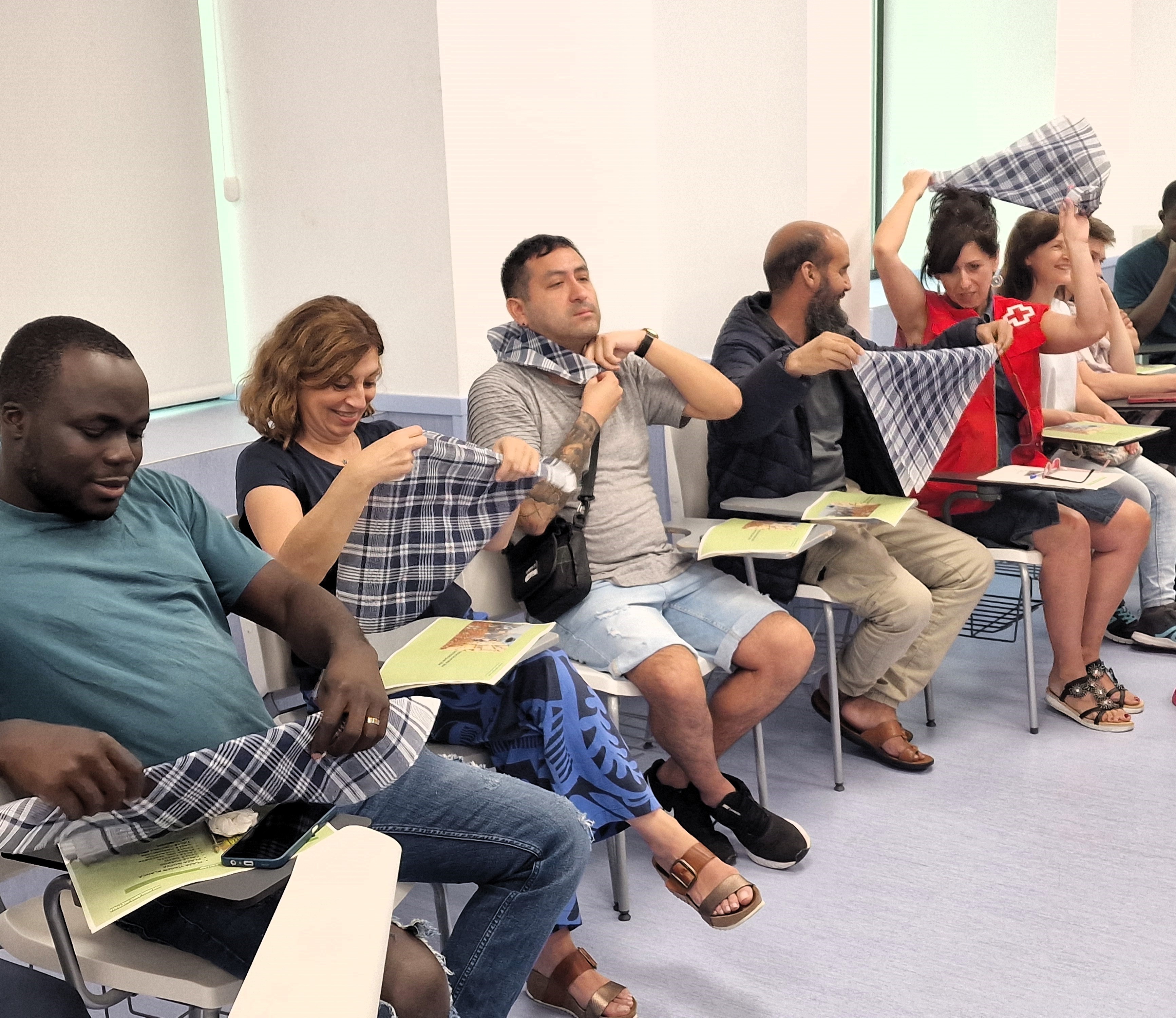 De ese interés por ofrecer una integración nace esta iniciativa que comenzó el pasado 16 de julio. “Empezamos con un taller en el que se les explicó la bajada de Celedón (personaje típico de la festividad), lo que se canta, se les dio un pañuelo de fiestas, se les enseñó algunas palabras en euskera y finalmente, se hizo un paseo visitando diferentes localizaciones de la ciudad”, cuenta la referente. Al primer encuentro asistieron alrededor de unas treinta personas de diferentes países como Perú, Gambia, Senegal, Ucrania, Armenia, entre otras, y fue todo un éxito. “Desde pequeña mis padres me contaban que en una parte del mundo existía una cultura y lengua tan única, preciosa y antigua como en Armenia, refiriéndose a la vasca. Tenemos mucho en común, desde las fiestas, hasta la comida y la lengua. Hay muchas palabras iguales como, por ejemplo: on, egun, zuri, arachalde, kayc, etc. Y ahora estoy teniendo la oportunidad de conocer más sobre esta”, cuenta Nrane Aghajanyan, refugiada política, participante del taller e integrante del programa de Asilo y Refugiados de Cruz Roja en Álava.