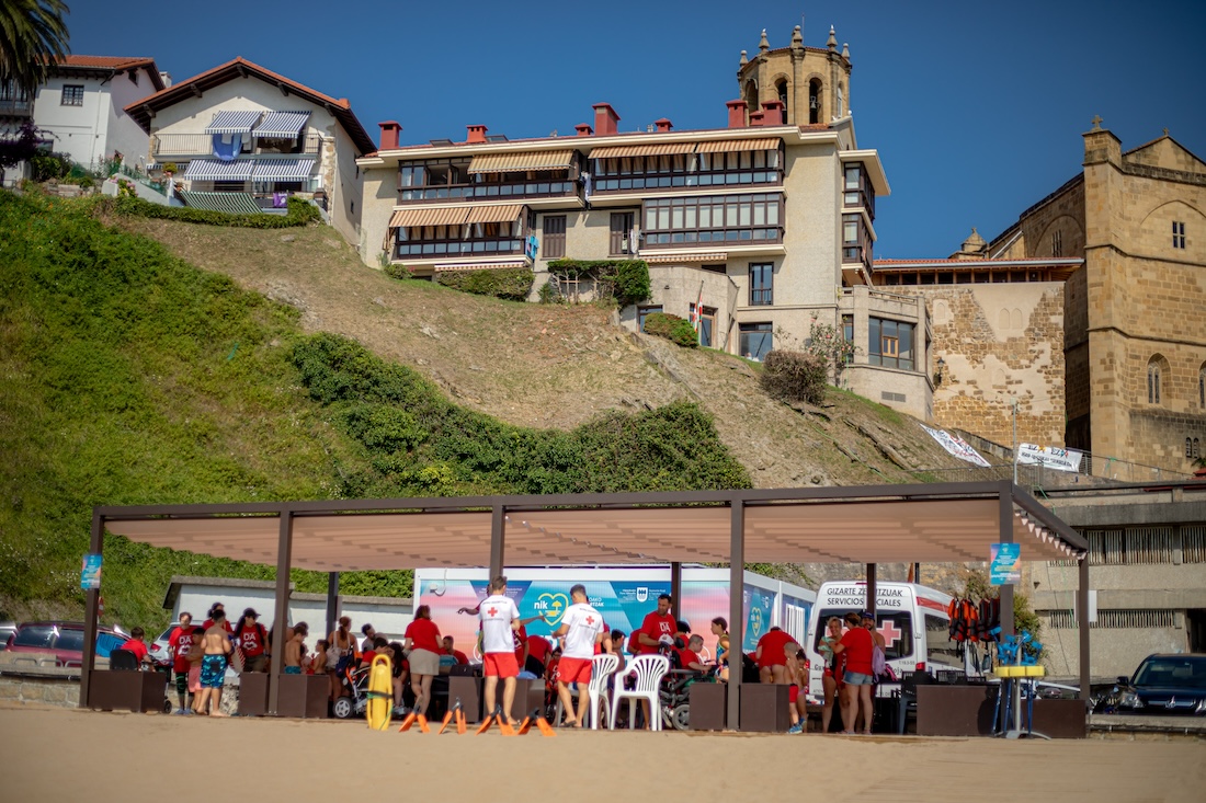 Disfrutar de un día de playa puede ser el día a día de muchas personas, pero otras, en cambio, pueden encontrar dificultades a la hora de acceder al baño de forma segura y sin riesgo. Por este motivo, eliminar los obstáculos para que todas las personas puedan disfrutar del mar con seguridad es el objetivo del servicio de Baño Asistido que realiza la Organización, actualmente, en 40 playas del territorio. “Ahora, gracias a la diputación de Gipuzkoa realizamos esta actividad para personas mayores y el servicio es muy completo, ya que cuenta con recogida, zona de aparcamiento, pasan el día en la playa y los volvemos a dejar en sus domicilios. A pesar de dirigirnos normalmente a personas mayores, el pasado sábado 10 de agosto fue diferente, recibimos una visita muy especial”, cuenta Félix Zubia, responsable de Salud y Socorros de Cruz Roja en Gipuzkoa.