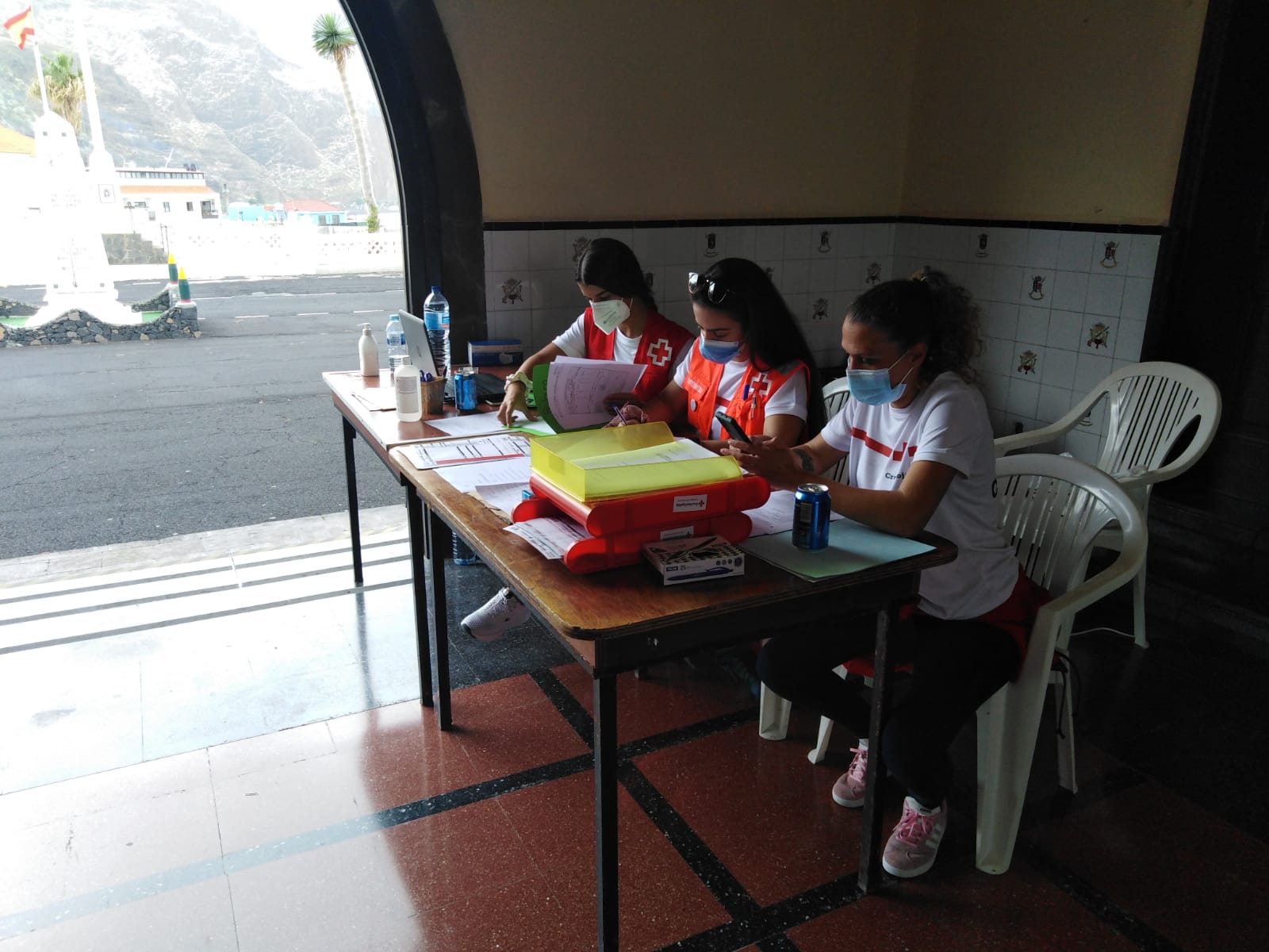 Tras la filiación, es el Servicio de Urgencias canario, exclusivamente, el que se está encargando de trasladar a los evacuados al albergue situado en el acuartelamiento de El Fuerte. Los recursos de Cruz Roja permanecen en estos puntos de encuentro hasta que son solicitados para colaborar en nuevas evacuaciones.