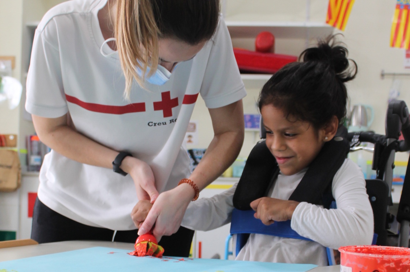 Promover el bienestar del alumnado se dice rápido, “pero conlleva una actividad intensa y diversificada”, recuerda Rodríguez. Hay que reforzar los vínculos emocionales a través de la generación de rutinas, como las de bienvenida y despedida, que les hacen sentirse más queridos, escuchados y protegidos. A su vez, se deben diversificar las tareas escolares en función de las necesidades de cada alumno/a. Las actividades grupales o individuales pasan por la higiene respiratoria, movilidad acuática, deporte adaptado, psicomotricidad o los talleres de estimulación, entre otros asuntos. El voluntariado de Cruz Roja también colabora en excursiones semanales para pasear por la ciudad o acudir a citas culturales.