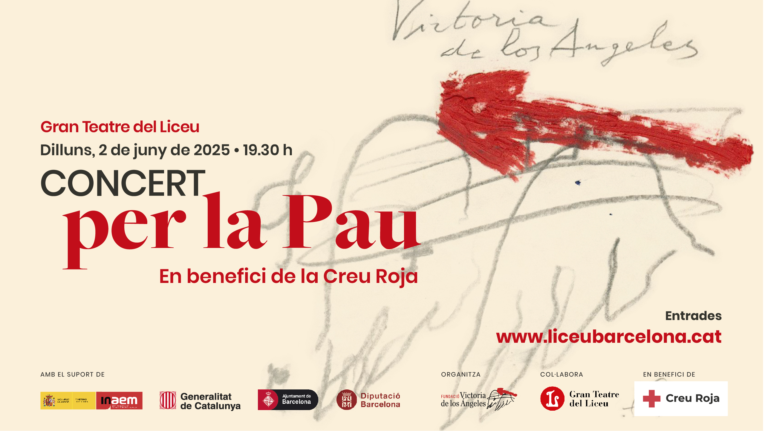 El lunes 2 de junio a las 19.30 h, el Gran Teatre del Liceu acogerá una nueva edición del ‘Concert per la Pau’, impulsado por la Fundación Victoria de los Ángeles con la colaboración del Liceu y en beneficio de Cruz Roja. Esta iniciativa, que nació en 2022 como respuesta al estallido de la guerra en Ucrania, vuelve ahora a favor de la paz, la solidaridad y el entendimiento entre pueblos, reafirmando el compromiso del mundo musical con los derechos universales.