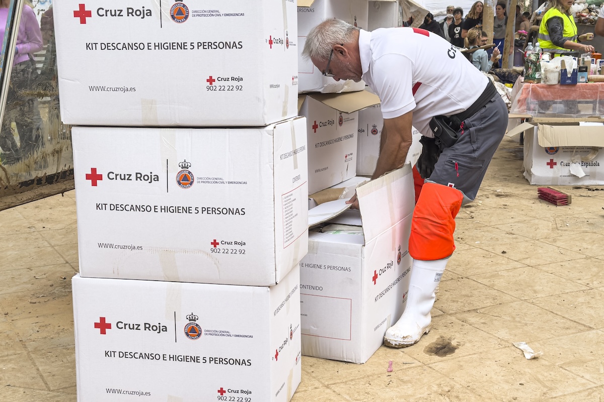 Cruz Roja en coordinación con la Diputación de Valencia está entregando kits de abrigo e higiene de la Dirección General de Protección Civil a la población afectada por la DANA en los municipios de Aldaia, Catarroja, Paiporta, Sedaví, Picanya, Albal, Alfafar y Beniparrell. El dispositivo, que se está llevando a cabo durante las jornadas del martes y el miércoles ante la previsión del descenso de las temperaturas, supondrá el reparto por parte de Cruz Roja de 1.800 cajas que darán cobertura a 9.000 personas. Se trata de kits con materiales estandarizados de Protección Civil