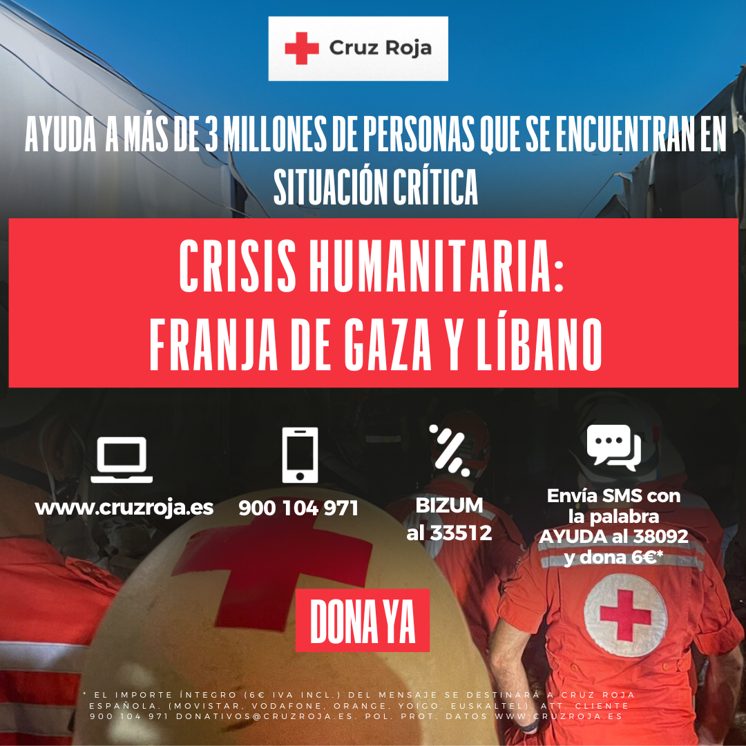 Ante la crítica escalada de violencia y el deterioro de la situación humanitaria tanto en Líbano como en la Franja de Gaza, el Movimiento de la Cruz Roja y la Media Luna Roja aumenta sus recursos para dar apoyo a la Cruz Roja Libanesa y la Media Luna Roja Palestina, que trabajan sin descanso para atender las necesidades inmediatas de la población más afectada. A medida que se agrava la situación, Cruz Roja Española intensifica su apoyo a la Media Luna Roja Palestina y la Cruz Roja Libanesa en la respuesta a las crecientes necesidades humanitarias, principalmente en los ámbitos de la atención sanitaria y la distribución de artículos de primera necesidad y en la respuesta a la emergencia.
