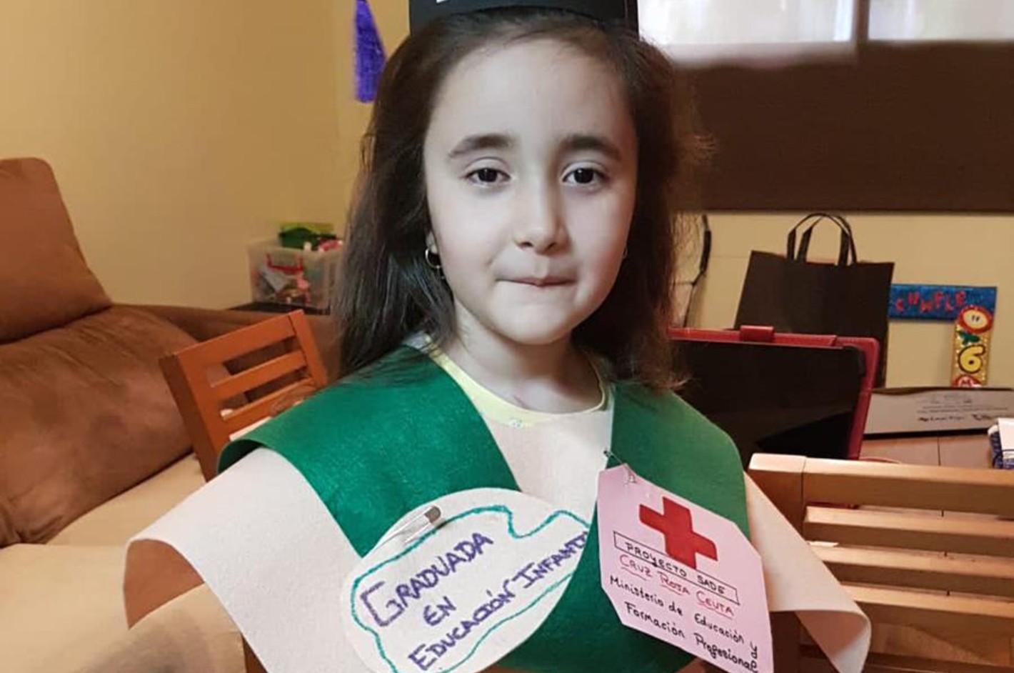 Adriana Heredia, de 6 años de edad, acaba de graduarse con honores en Educación Infantil. La pequeña, que ha recibido educación en casa debido a su situación de riesgo tras un cáncer de pulmón, ha obtenido este diploma de su profesora de Cruz Roja Ceuta, Auxiliadora. Y es que nada puede frenar las irrefrenables ganas de aprender.