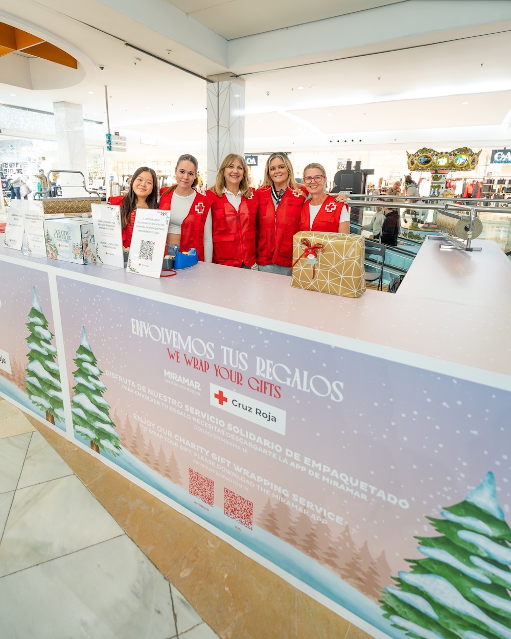 En el Centro Comercial Miramar de Fuengirola (Málaga), Cruz Roja vuelve a estar presente con su tradicional servicio de empaquetado solidario. La idea es que las personas se acerquen al stand, ubicado en la planta baja, y con una contribución mínima de 1 €, el voluntariado se encarga de envolver sus regalos.