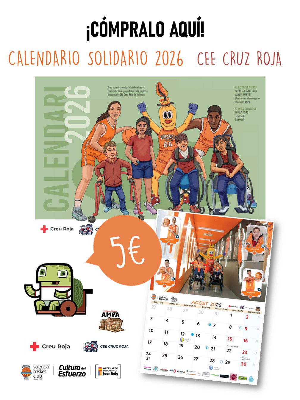 El Calendario Solidario 2026 del Valencia Basket ya está disponible y vuelve a convertirse en una de las iniciativas más especiales de esta época del año. Promovido por el AMPA del Centro de Educación Especial Cruz Roja, junto con el Valencia Basket y el apoyo de Cruz Roja, este proyecto recauda fondos para mejorar el equipamiento y los servicios del centro educativo, que atiende a niños y niñas hasta los 21 años con parálisis cerebral infantil y otras necesidades educativas especiales.
