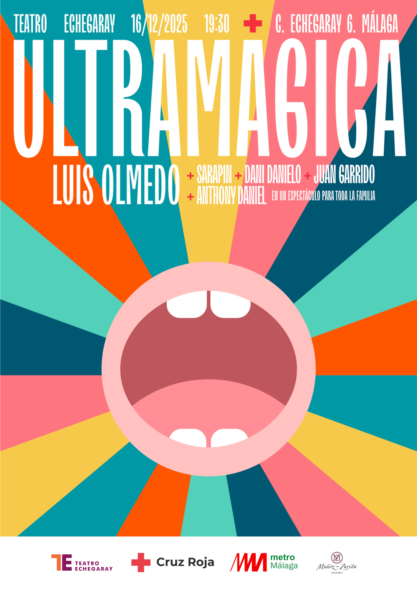 Lanzamos en Málaga la segunda edición de Ultramágica, un espectáculo con el que promovemos que padres, madres, hijos e hijas disfruten de una tarde solidaria de la mano de Cruz Roja. Tendremos a magos de distintas disciplinas (magia de cerca, malabarismos, payasos, magia infantil...) y contaremos con Luis Olmedo, reconocido internacionalmente con giras en multitud de países y que es campeón del mundo de micromagia.