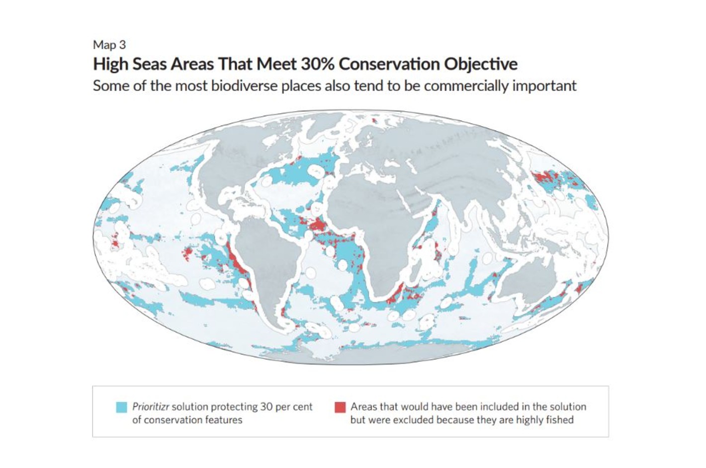 Hay que tener en cuenta que en la actualidad menos del 1% de las aguas internacionales cuentan con alguna figura de protección, cuando las recomendaciones desde el mundo científico es que ese porcentaje se eleve al menos al 30%, y no sólo para las aguas internacionales, también para aguas nacionales las cuales también están protegidas muy por debajo de dicho porcentaje. Sin perjuicio de la necesidad de ahondar en el conocimiento de la distribución de los ecosistemas y especies de interés en alta mar, con la información actual se han identificado 10 grandes áreas por parte de diferentes estudios. En la imagen se puede ver las zonas identificadas como de alto valor para proteger.