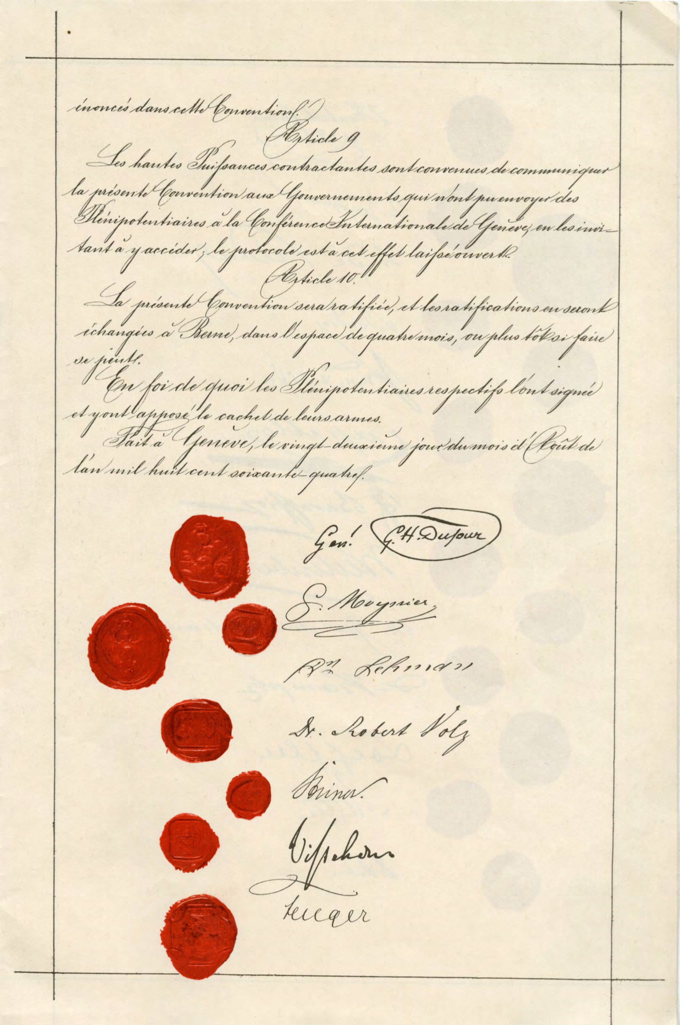 Además del compromiso formal de los 12 países encaminado a cuidar a los soldados heridos, la verdadera revolución en el campo del Derecho Internacional de este acuerdo es el concepto de ‘Neutralidad’ que a partir de entonces se aplicó como estatuto del personal sanitario. Se establece que, desde ese momento, este personal no puede ser hecho prisionero, sino que se le debe dejar que prosiga su tarea de socorro devolviéndolo luego a su ejército.
