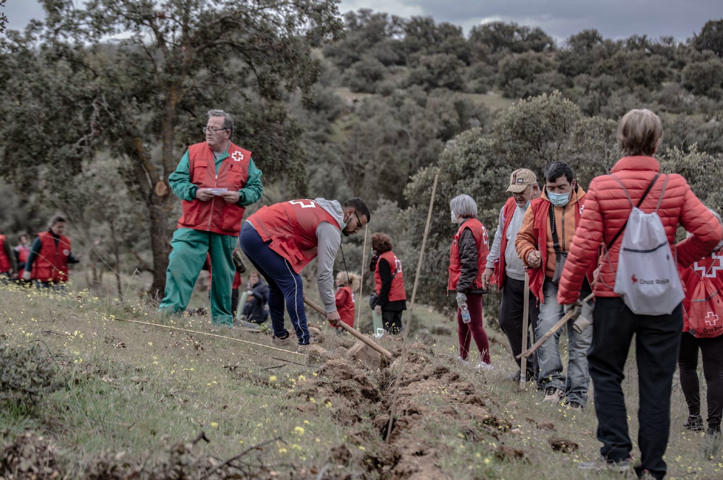 El pasado marzo una gran mancha roja tiñó de verde la Finca el Borril, situada en el municipio de Polán, en Toledo. Bajo la Estrategia CO(mpensa)2 de Cruz Roja y con la colaboración de la Diputación de Toledo, más de 80 personas (entre voluntariado, personal técnico y personas interesadas) plantaron 500 plantas autóctonas en 1,25 hectáreas en lo que supone solo una de las primeras acciones que se han vuelto a poner en marcha gracias a la llegada de la primavera y el buen tiempo.