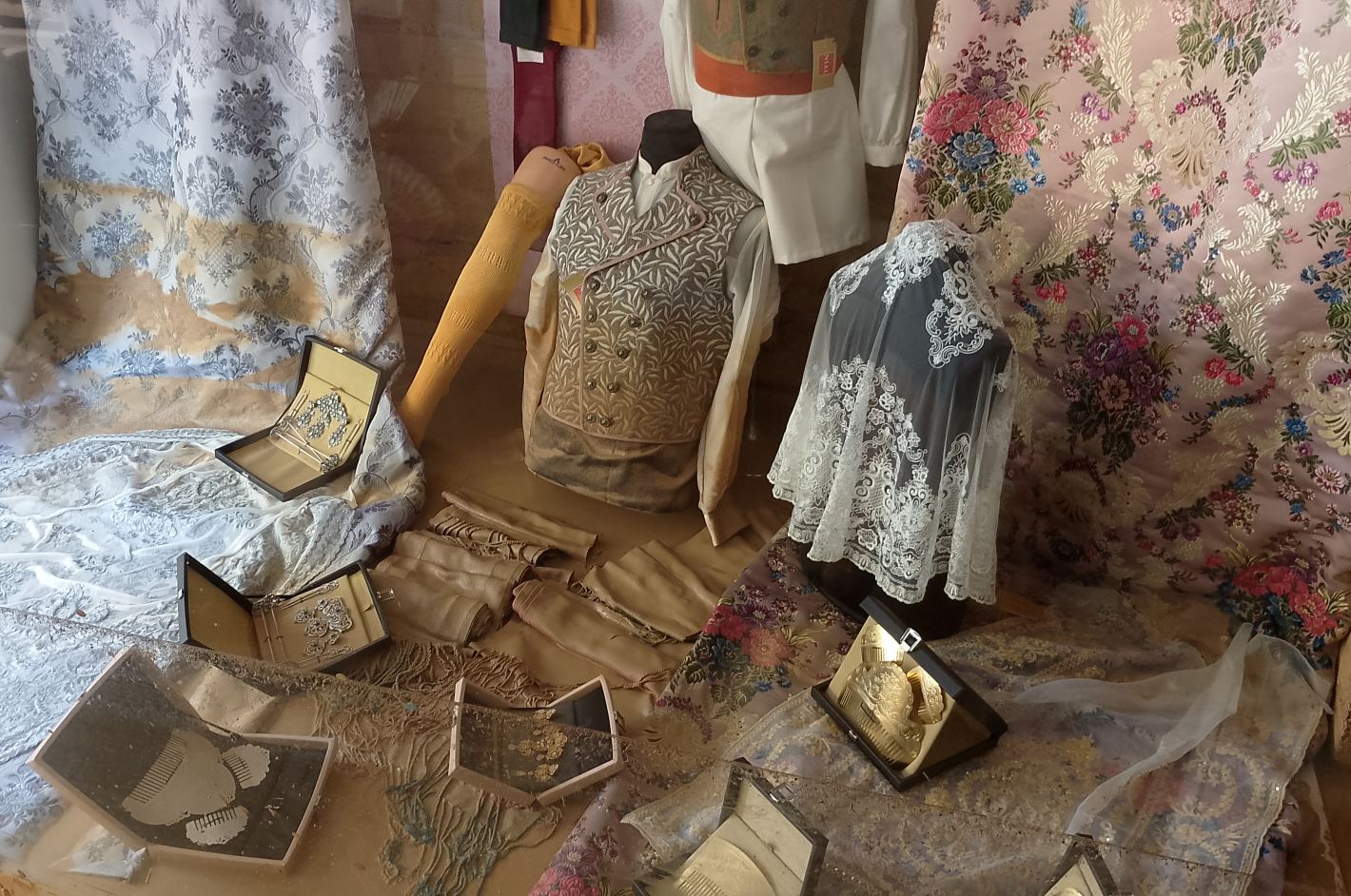 Aunque desde su casa hasta la tienda apenas hay 10 minutos andando, aquel día tardaron casi unos 40 en alcanzar el comercio “sorteando todo lo que nos encontrábamos por la calle”. “Desde la esquina ya vimos que lo que había pasado podía ser desastroso”, lamenta. Detrás de los escaparates se podía ver la tienda destrozada. “Trajes de fallera terminados que teníamos para entregar, trajes para probar y terminar, telas que valían un dineral hundidas en el barro… los aderezos, las peinetas, los zapatos, las mantillas, los moños, los calcetines…”, enumera Amparo, que cuenta que también perdieron máquinas de coser. Lloraron, pero no solo por lo que estaban viendo, sino por el futuro incierto que se cernía sobre ellos.