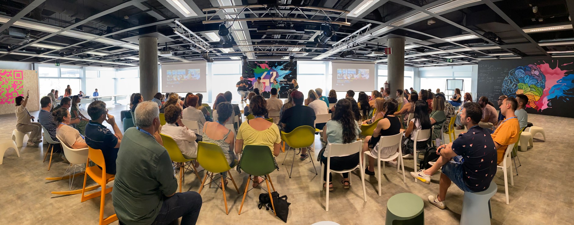 42 es uno de los campus presenciales de programación más innovadores que existen. Sin requisitos previos de titulación, formación y experiencia, gratuito, sin profesorado, sin límite de edad, abierto 24/7, sin clases y sin libros, con una metodología basada en el aprendizaje entre pares y la gamificación, el trabajo en equipo colaborativo y por proyectos, donde cada persona puede decidir su ritmo de aprendizaje, en función de sus necesidades y dificultades.