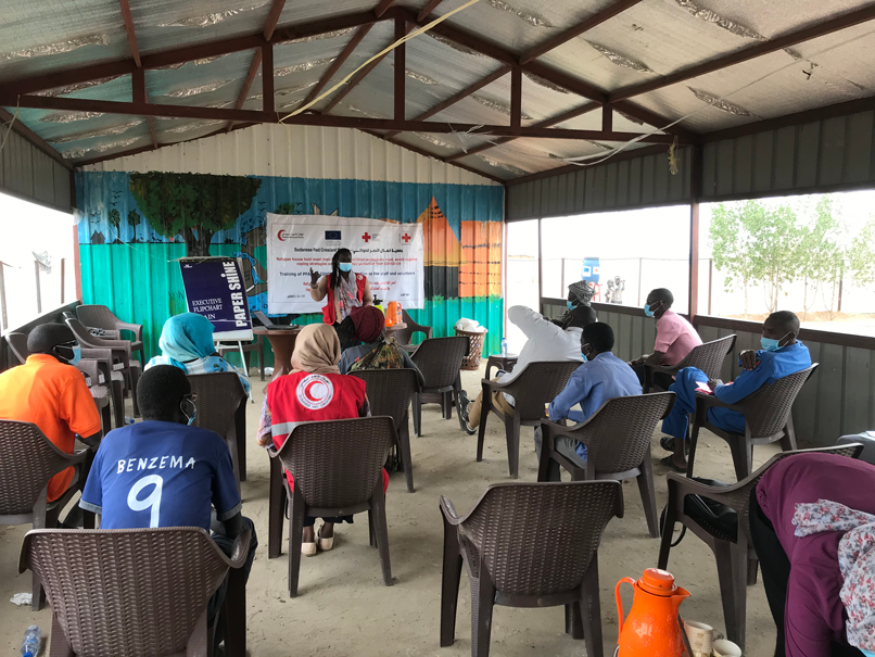 Por otro lado, a fin de garantizar la salud de la población refugiada en el contexto de la pandemia de COVID-19, Cruz Roja Española ha llevado a cabo sesiones de información dirigidas al personal y a los voluntarios y las voluntarias de la Media Luna Roja Sudanesa que trabajan en los centros de recepción de los campos, sobre modos de contagio del COVID-19, prevención y protocolos de detección y derivación de casos. Además se instalaron 50 dispositivos de lavado de manos en puntos estratégicos de los campos (estaciones de transporte, iglesias, centros comunitarios, etc.) y se distribuyeron kits de higiene a 2.200 familias vulnerables encabezadas por mujeres para garantizar su acceso a productos de aseo personal y desinfección y mejorar la capacidad de almacenamiento de agua en sus hogares.