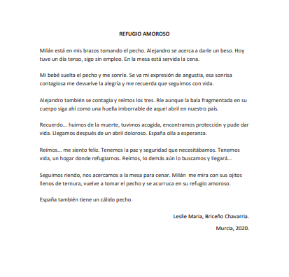 | El aprendizaje del idioma resulta una herramienta indispensable para la inclusión social de las personas que solicitan asilo. Por ello, es importante destacar el esfuerzo adicional que han tenido que realizar las personas que han participado en el concurso cuyas lenguas nativas no son el castellano para escribir sobre temas tan personales en una lengua diferente a la suya. En particular hay que destacar la dificultad que entraña conocer las correctas reglas de escritura tanto en lo que a estilo y a gramática se refiere, como a la corrección ortográfica. Igualmente, el conocimiento de otras lenguas co-oficiales en España resulta fundamental para la integración cuando la persona refugiada reside en territorios donde se habla más de una lengua. |