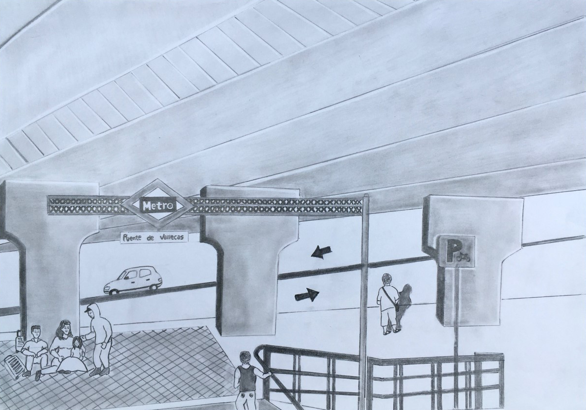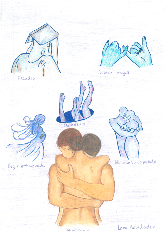 A través de este dibujo realizado en acuarela, intento transmitir una idea sobre mi situación actual en España. Expresando la existencia de un lugar que no tiene fronteras claras, y sus elementos y colores se funden con los elementos del fondo del cuadro, y a pesar de ello, sigue representando la forma del hogar o cobijo. En cuanto al libro que existe en el dibujo, es un indicio de la oportunidad que tuve de estudiar un máster en la Universidad de Granada.