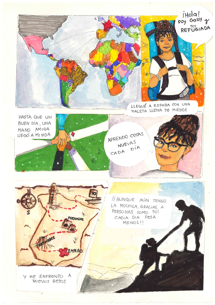 Decidí participar en este concurso principalmente para presentarme a través de mi trabajo. Ha trabajado durante muchos años en el campo de la ilustración infantil en el mundo árabe. Espero que mis dibujos se utilicen en el futuro con fines de sensibilización y apoyo a los refugiados en el programa de Cruz Roja Española, y que esto sea un regreso a mi trabajo nuevamente en España.