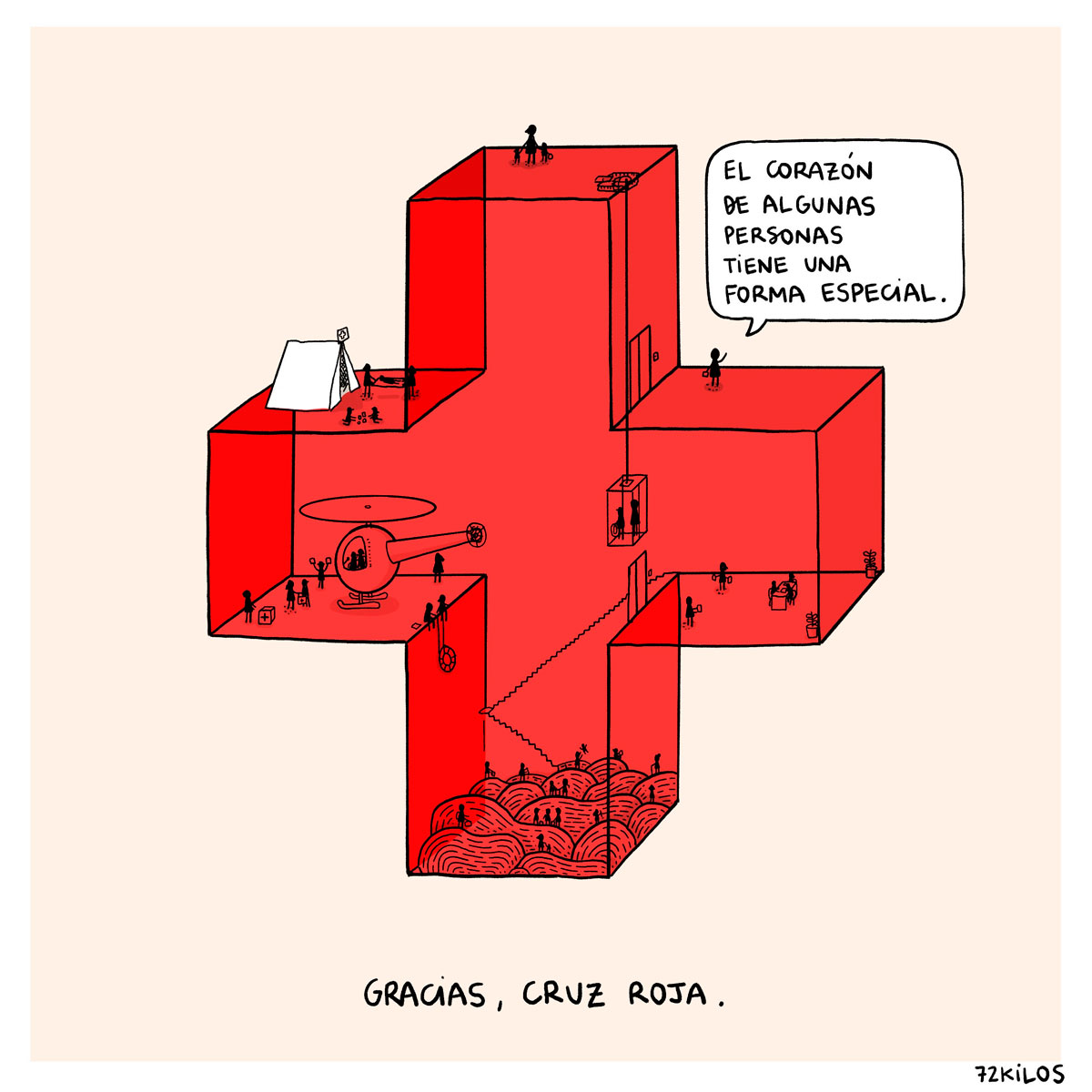 Los paisajes oníricos y las reflexiones positivas inundan la obra del bilbaíno Óscar Alonso, el ilustrador y también publicista que está detrás de ‘72kilos’ (su seudónimo artístico). Comenzó a dibujar en 2008 y, desde entonces, no ha parado de cosechar éxitos, especialmente en el ámbito digital. Sus viñetas son auténticos fenómenos virales cargados de buen rollo que también ha recogido en libros como Las vidas que dibujamos, El mundo es un regalo o Las cosas que importan.