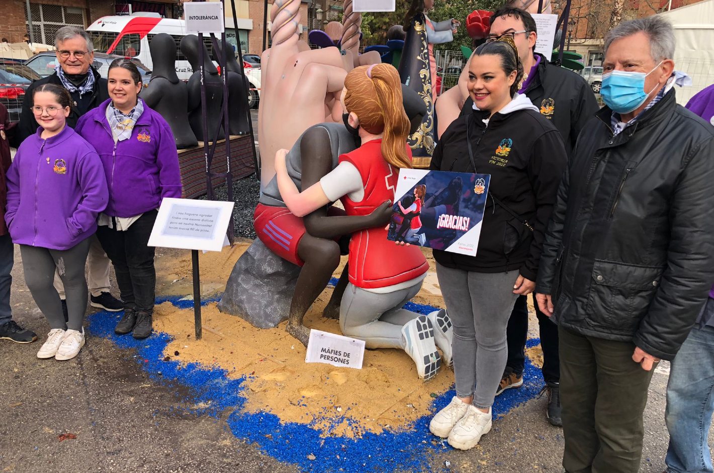 En la falla, se aprecia a Luna abrazando a Abdou, y aunque no es enteramente “realista”, precisa Víctor Navarro, sí se inspiraron en una foto concreta para tratar de que la posición fuera lo más cercana a la realidad posible. “Intentamos captar el mensaje, sobre todo en las caras de Abdou y en la de ella. La desesperación de él, la empatía de ella”, puntualiza. Testigo de ello ha sido Javier Senent, presidente de Cruz Roja, que pudo visitar la falla hace unos días en València.
