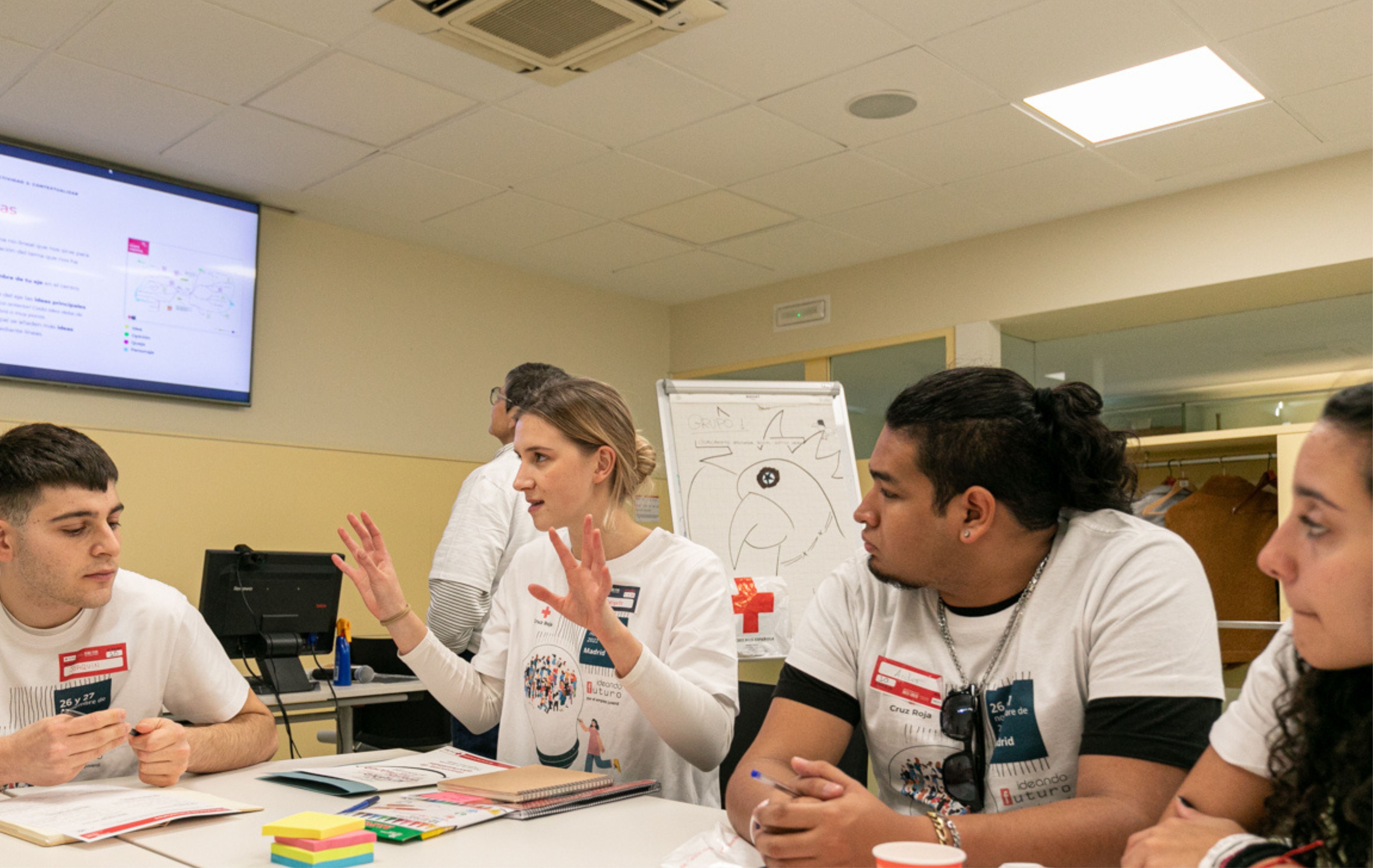 Para poner el foco en los y las protagonistas de estas cuestiones, el Área de conocimiento de empleo celebró en Madrid el Encuentro “Ideando Futuro por el empleo juvenil”. Durante dos días, y mediante la metodología Design Thinking, 81 jóvenes participantes, voluntarias y voluntarios de las iniciativas GO de empleo Juvenil de Cruz Roja, Cruz Roja Juventud y Proyecto Acompaña, hicieron suya la sede de Cruz Roja para analizar lo que les preocupa de su futuro laboral, lo que necesitan para lograr sus sueños y cómo puede ayudarles la organización con iniciativas que impacten en diversas esferas de su vida.