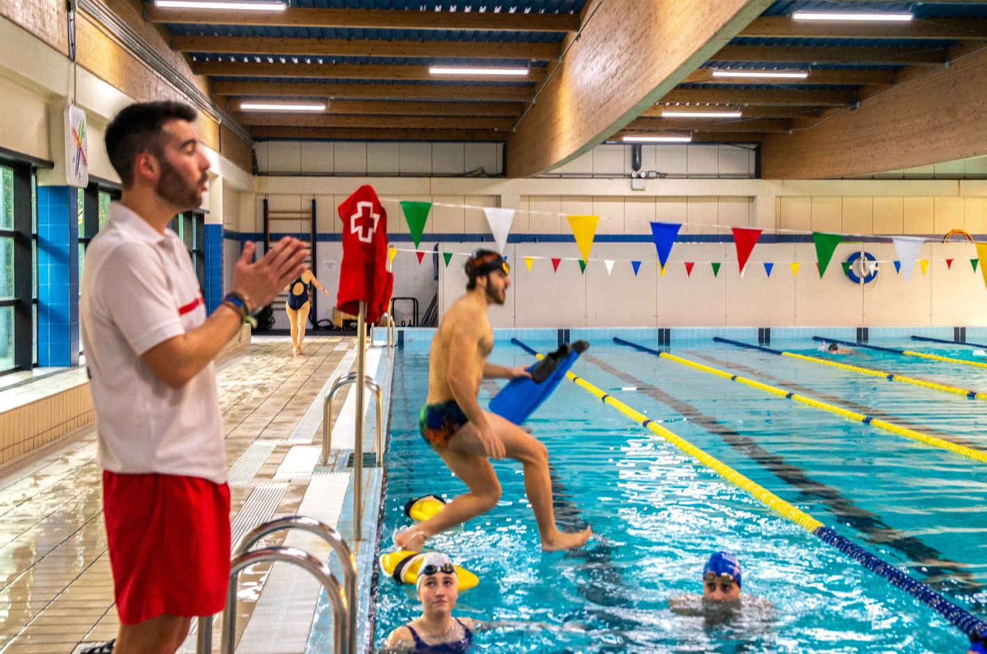 Frente a lo que se pueda pensar, un curso de socorrismo no solo consiste en aprender técnicas, sino en “asegurar una preparación sólida en un oficio donde está en juego la vida de otras personas”, puntualiza Juan Fernando. Es por eso que la formación de socorrismo que ofrece Cruz Roja destaca por ser muy completa y está diseñada para dar respuesta a las necesidades reales del entorno acuático y atender a personas en situación de riesgo. Incluye módulos de primeros auxilios, soporte vital básico, prevención en el medio acuático, técnicas de rescate y uso del material específico.