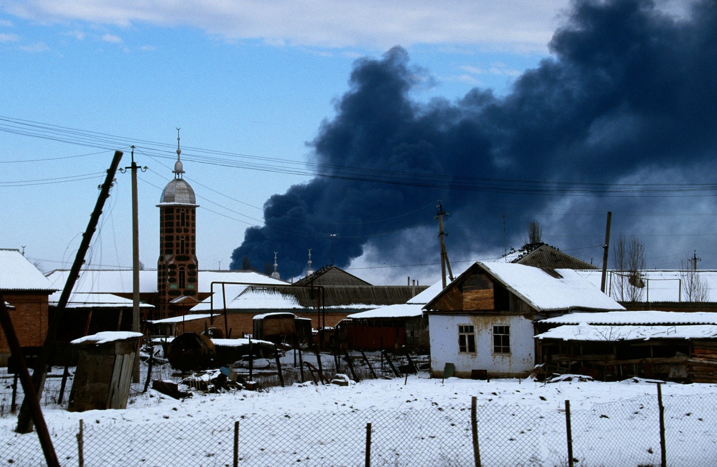 Grabhorn, Paul. Chechenia, 1995. Suroeste de Grozny. Una refinería de petróleo arde como consecuencia del bombardeo..(c) CICR