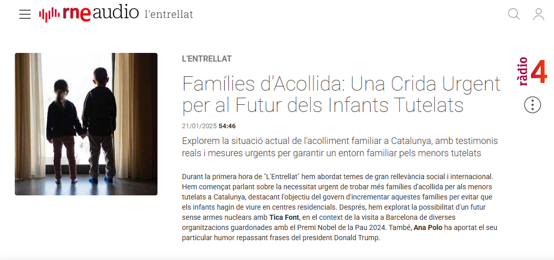 2025 - Programa L'Entrellat de Radio 4 (RTVE). Familias de Acogida: Una Llamada Urgente para el Futuro de los Menores Tutelados
