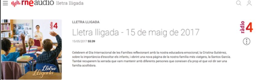 2023 - Participació al programa L'Ofici d'Educar (El suplement) de Catalunya Radio, sobre l'Acolliment Familiar.