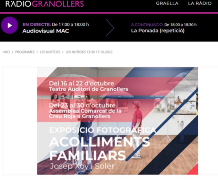 2023 - Ràdio Granollers. Exposició “Acolliments Familiars” de la Creu Roja a Granollers